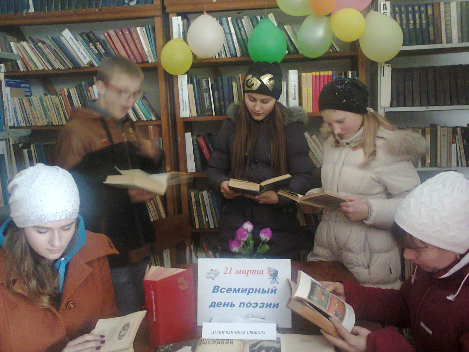 К мероприятию была оформлена выставка литературы «Души высокая свобода», на которой были представлены произведения великих поэтов прошлого и современности о любви и весне.