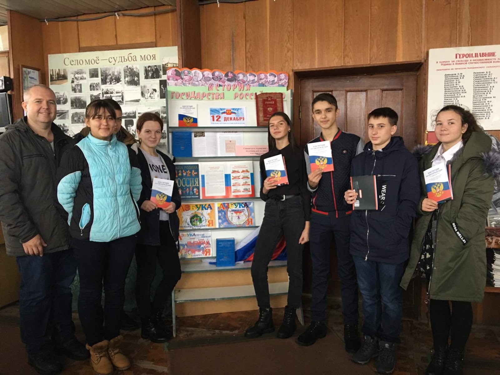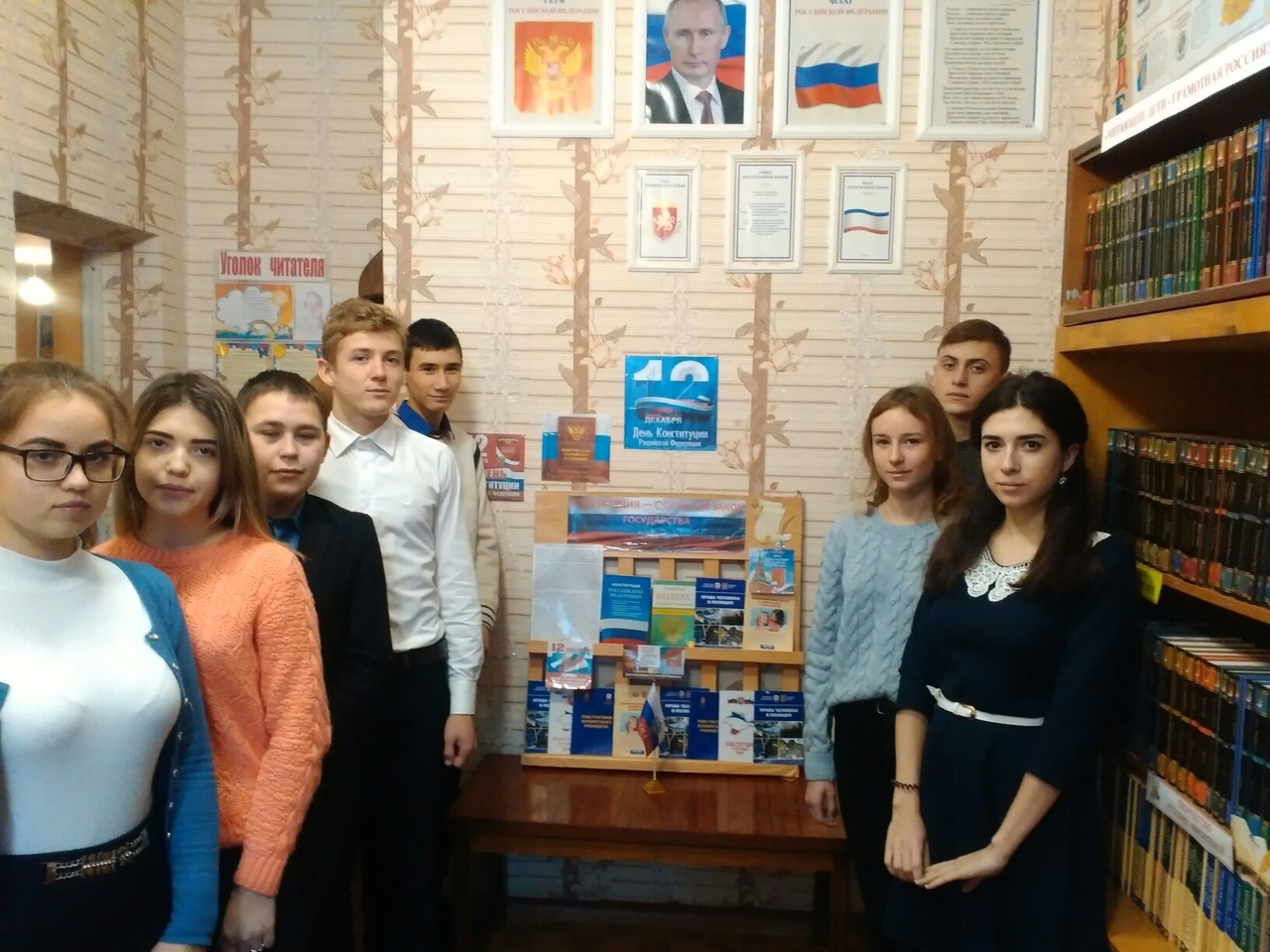 Новокрымская библиотека 12 декабря заведующая Новокрымской библиотеки Нимчук Е.Г. провела час права «Государство, в котором я живу», для учащихся 9 класса Новокрымской школы. Елена Григорьевна рассказала об истории создания Конституции РФ, что Конституция определяет частную жизнь граждан с рождения и до глубокой старости. В ней прописаны возможности всех граждан и их обязанности, такие как право на образование, здравоохранение, достойно оплачиваемый труд, на владение частной собственностью и многие другие. В процессе мероприятия обсуждалось толкование российских символов. Поработали с текстом Конституции в правовой игре «По страницам Конституции России». Эта игра помогла участникам решать поставленные задачи. Важным результатом игровой программы явилось понимание не только своих прав, но и обязанностей для того что бы вырасти достойными гражданами. Участие приняло 15 человек. Победненская библиотека