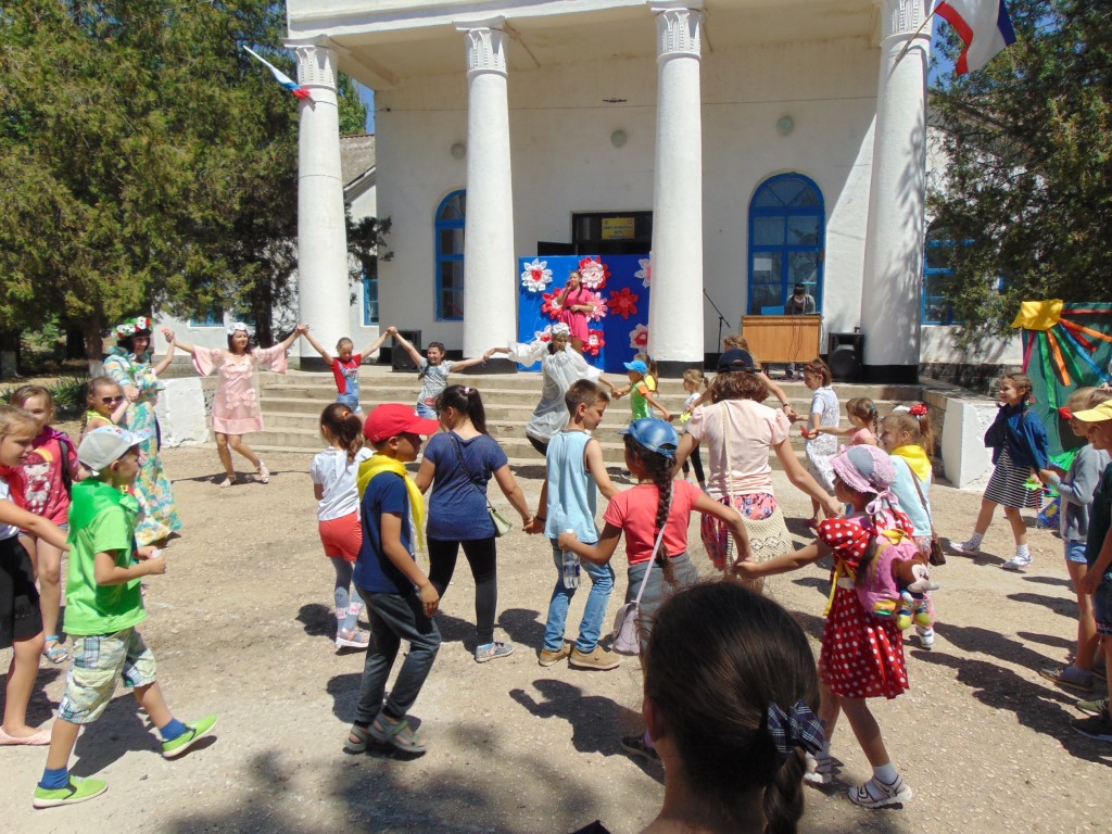 Работники Завет - Ленинской библиотеки (библиотекарь Кабриль Ирина Викторовна) и Завет – Ленинского Дома культуры (директор Людмила Сергеевна Левчук) совместно с работниками эколого – биологического центра организовали и провели детский праздник « Детство – Это красок радуга». В этот замечательный день к ребятам пришла самая долгожданная гостья «Лето», в роли которой была библиотекарь Кабриль И.В. которая поприветствовала наших маленьких зрителей и предоставила слово для поздравления заместителю главы администрации Джанкойского района республики Крым Алле Аликовне Понаморенко и председателю Завет – Ленинского сельского совета, главе администрации Завет – Ленинского сельского поселения Владимиру Юрьевичу Никифорову, которые в свою очередь пожелали ребятам, что бы они росли здоровыми и были достойными наследниками своей страны. После чего праздник нарушить попыталась «Каменная Княжна», но ребята вместе с «Летом» решили убедить Княжну, что самый главный праздник детства сорвать никому не удастся и доказали они это тем, что участвовали в спортивных эстафетах, играх в кругу, выполняли весёлые задания, которые были подготовлены для них на «станциях» в парке им. Л.К. Захарьяна. По итогам спортивно – игровой программы были награждены команды, которые пришли первые, а все остальные получили поощрительные призы, а самое главное отличный и бодрый заряд на все летние каникулы. Присутствовало:200 человек