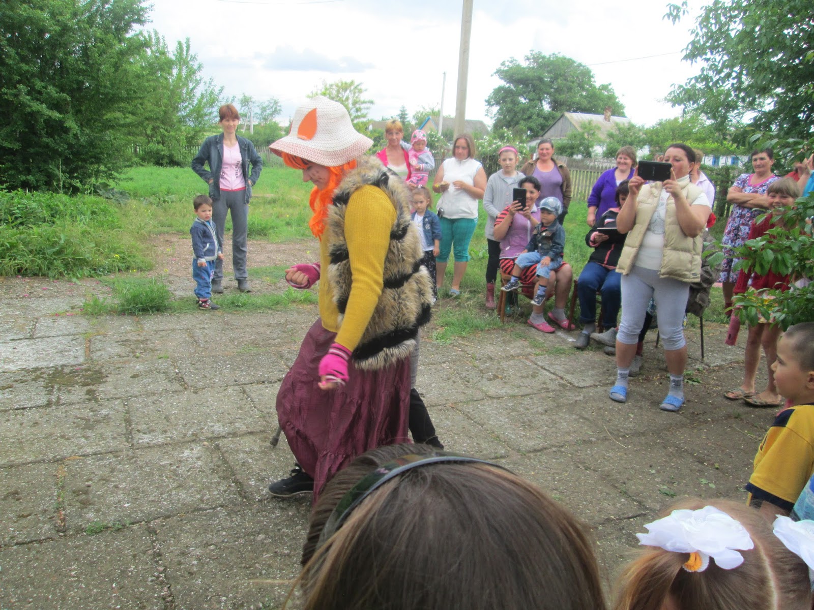 Ребята вместе со сказочными героями собрали Шаровую радугу, веселились, играли, смотрели выступления маленьких артистов. А в завершении праздника написали письмо: «Дорогой друг! В небольшом селе Ковыльное живет девочка Дуня. Она очень любит воздушные шарики и праздники для детей. 2 июня 2015 года мы отметили День Защиты детей, вместе со сказочными героями, собрали Шаровую Радугу, которая приносит счастье и удачу. К Радуге мы прикрепили это письмо и отпустили ее в небо. Нам очень интересно узнать, кто и где нашел письмо». В сказочных героев перевоплощались учащиеся Луганской школы, в клоуна – заведующий клубом Кравченко Л.Г. в Шапокляк – сельский библиотекарь Науменко Г.Л.
