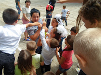 После проведения викторины на лучшего знатока сказочных героев, праздник продолжился на площади возле Дома культуры. Лиса Алиса и ее напарник Кот Базилио играли с ребятами в разнообразные игры и конкурсы, победители которых, конечно же, были награждены подарками. Веселая танцевальная музыка, конкурсы, загадки – все это создало позитивную атмосферу праздника. Детским праздничным мероприятием, было охвачено более 120 детей. А по окончании ребят ждал танцевальный флеш-моб.