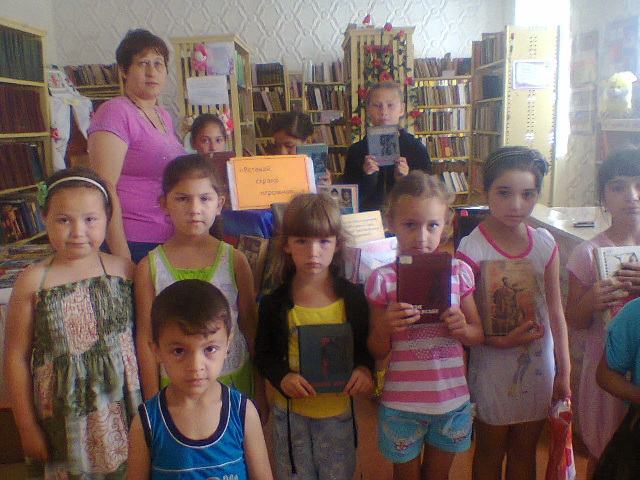 В Крымковской сельской библиотеке 21 июня сельский библиотекарь Л.В. Бойчук провела беседу у книжной выставки «Вставай страна огромная…», с учащимися 2-4 классов, посвященной годовщине начала Великой Отечественной войны