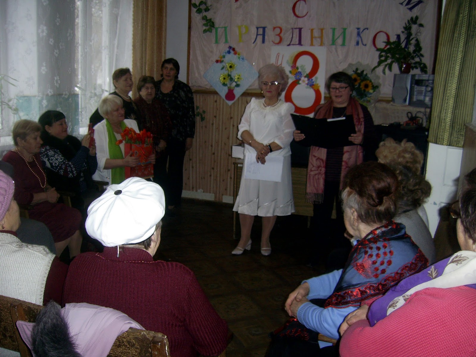 7 марта в комплексном центре социального обслуживания граждан пожилого возраста и инвалидов прошла литературно- музыкальная композиция «Весенний калейдоскоп», посвященная Международному женскому дню. Под звуки музыки и со словами поздравлений гостей встречали библиотекарь Даниленко С.В. и соцработник Кадирова Н.П.С букетом цветов и пирогом поздравить присутствующих пришли директор МОУ «Азовская школа-гимназия имени Николая Савв