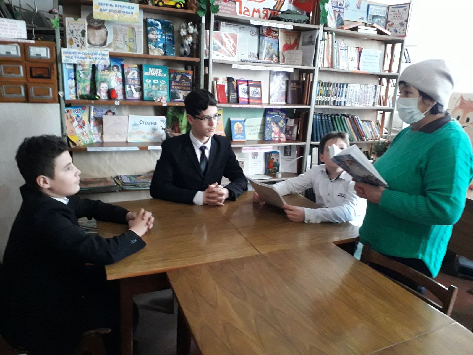 Библиотекарь Акбарова А.С. рассказала о мальчишках и девчонках на плечи, которых легла тяжесть невзгод, бедствий, горя военных лет. И не согнулись они под этой тяжестью, стали сильнее духом, мужественнее, выносливее. Примером были подвиги мальчишки Боря Кулешин и Аркаша Каманин.