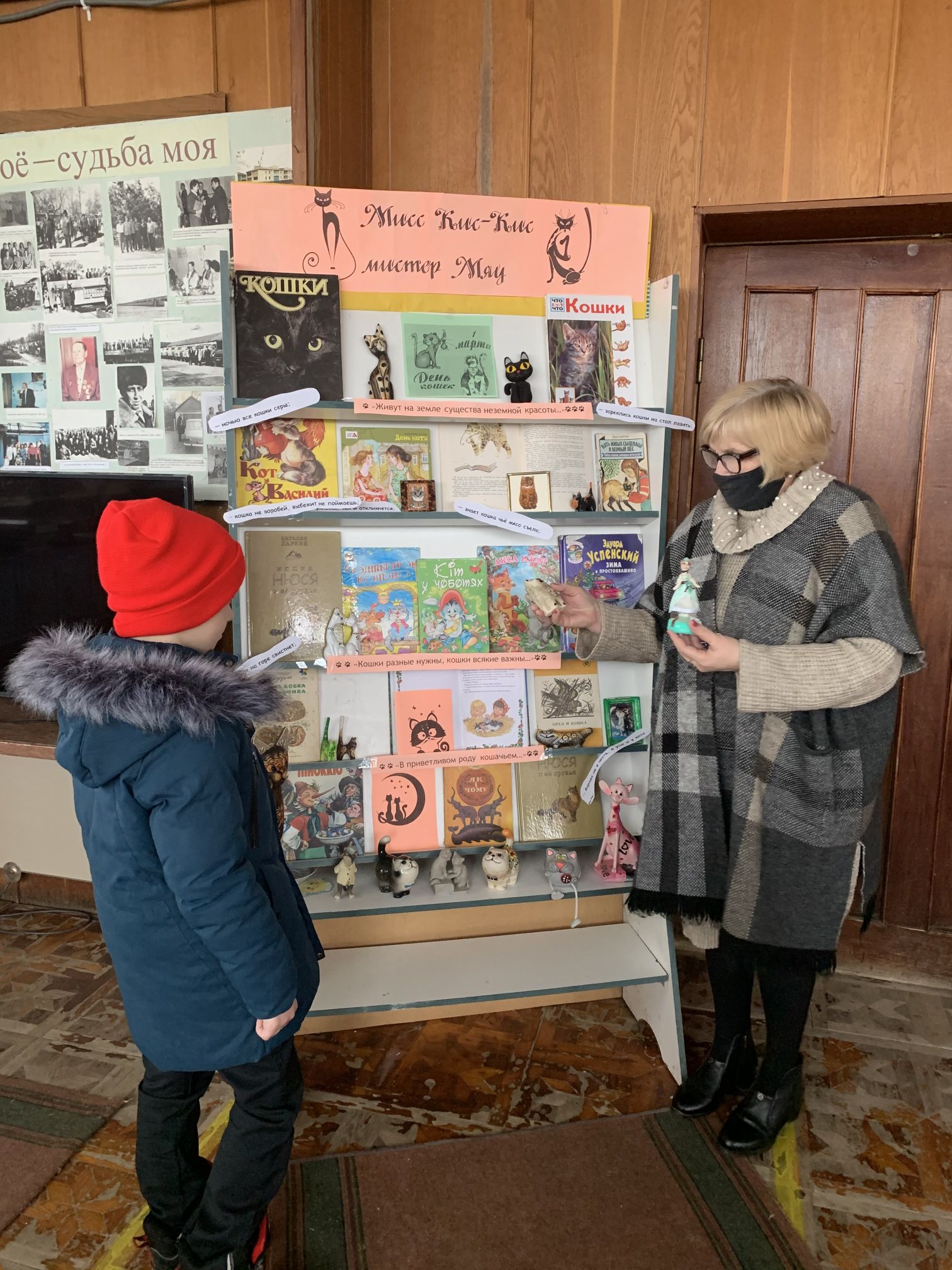 К Всемирному дню кошек заведующая Победненской библиотеки Кареева Т.Б. представила для своих читателей выставку – инсталляцию «Мисс Кис-Кис и мистер Мяу». На выставке можно найти произведения, где главными героями стали наши любимые пушистые питомцы, представлены энциклопедии о кошках, стихи, рассказы, сказки и журналы. А украсили выставку разнообразные фигурки котов.