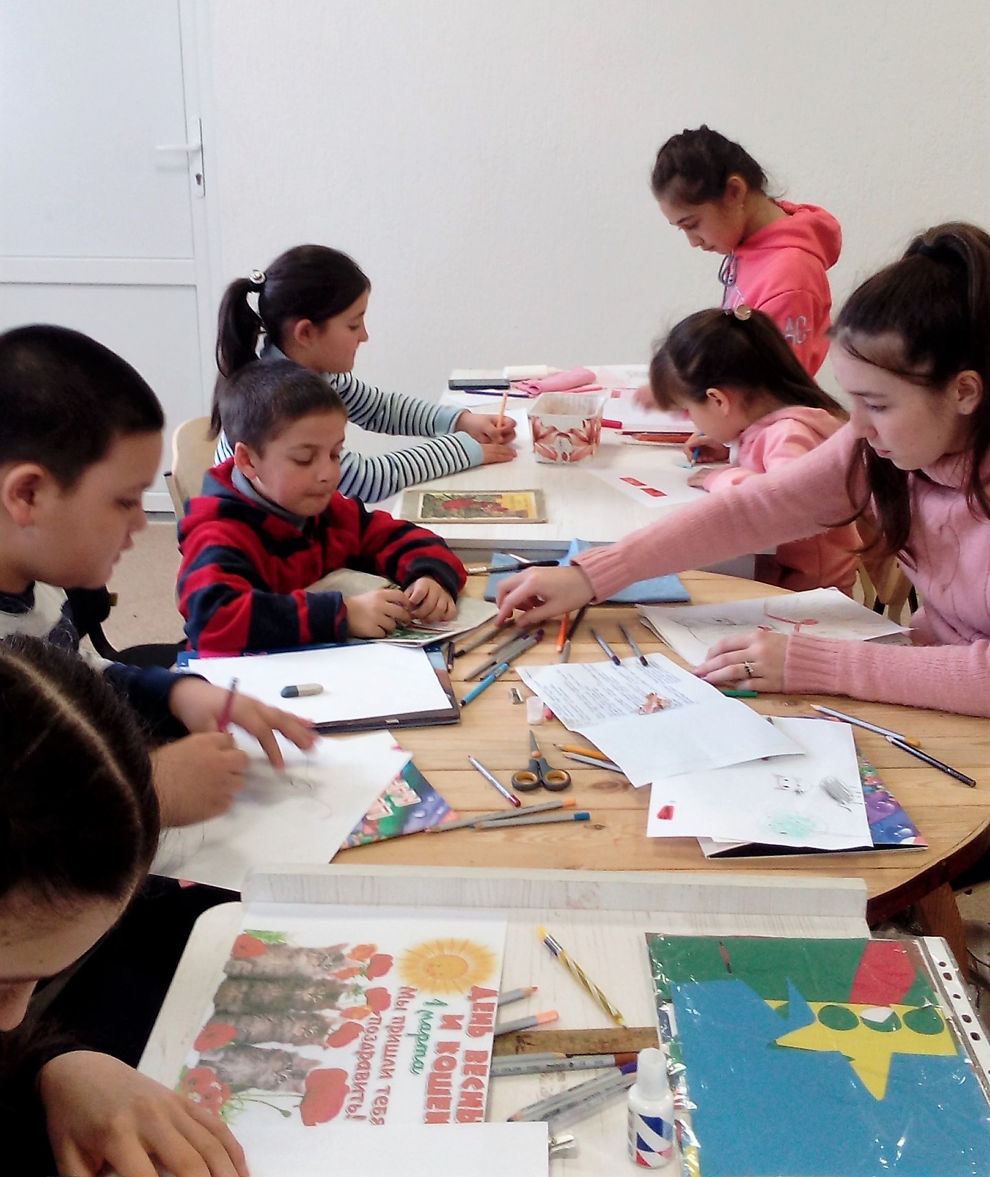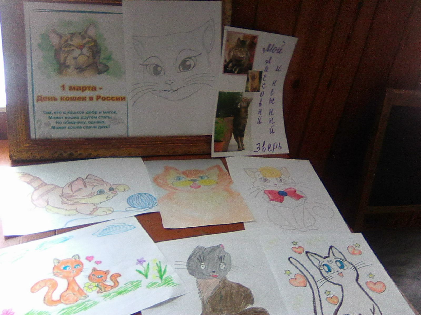 В преддверии Дня кошек в Марьинской сельской библиотеке собрались участники кружка для того, чтобы нарисовать своих домашних любимцев — кошек. Неотъемлемой частью каждого дома являются кошки — любимцы всех детей, ведь их можно гладить, с ними можно играть, они успокаивают человека. Дети с большим удовольствием рисовали своих кошечек и рассказывали о них смешные истории. Вместе с библиотекарем Алиевой Ф.М. дети вспомнили произведения литературы, посвящённые котам.