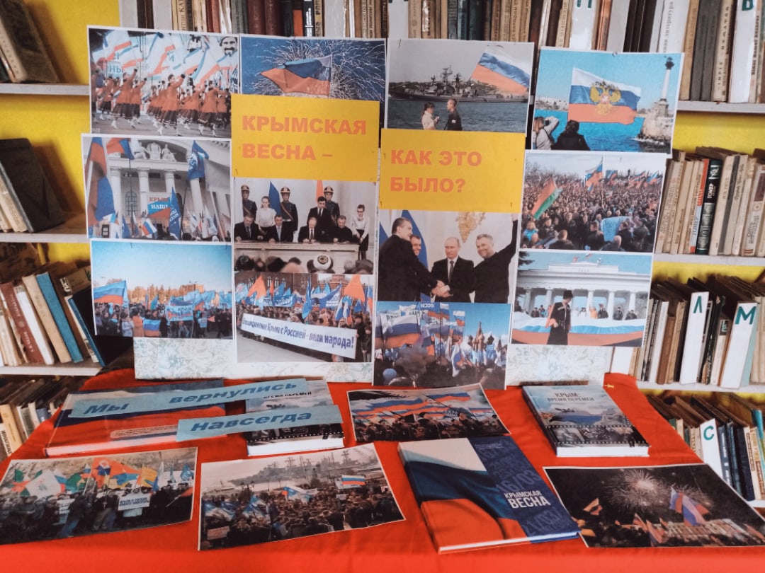 В годовщину памятных событий в Стальновской библиотеке оформлена тематическая полка «Крымская весна — как это было?». Для массового ч