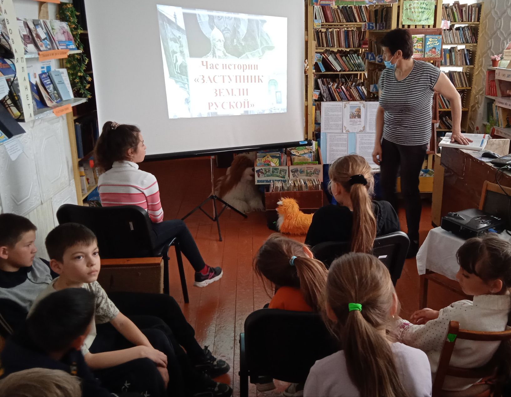 К 800- летию личности национального героя и средневекового полководца, князя Киевской Руси Александра Невского, 13 мая 2021 года в Крымковской сельской библиотеке (библиотекарь Бойчук Лариса Валентиновна), прошел час истории «Заступник земли Русской». На мероприятие пришли учащиеся 3-4 классов.