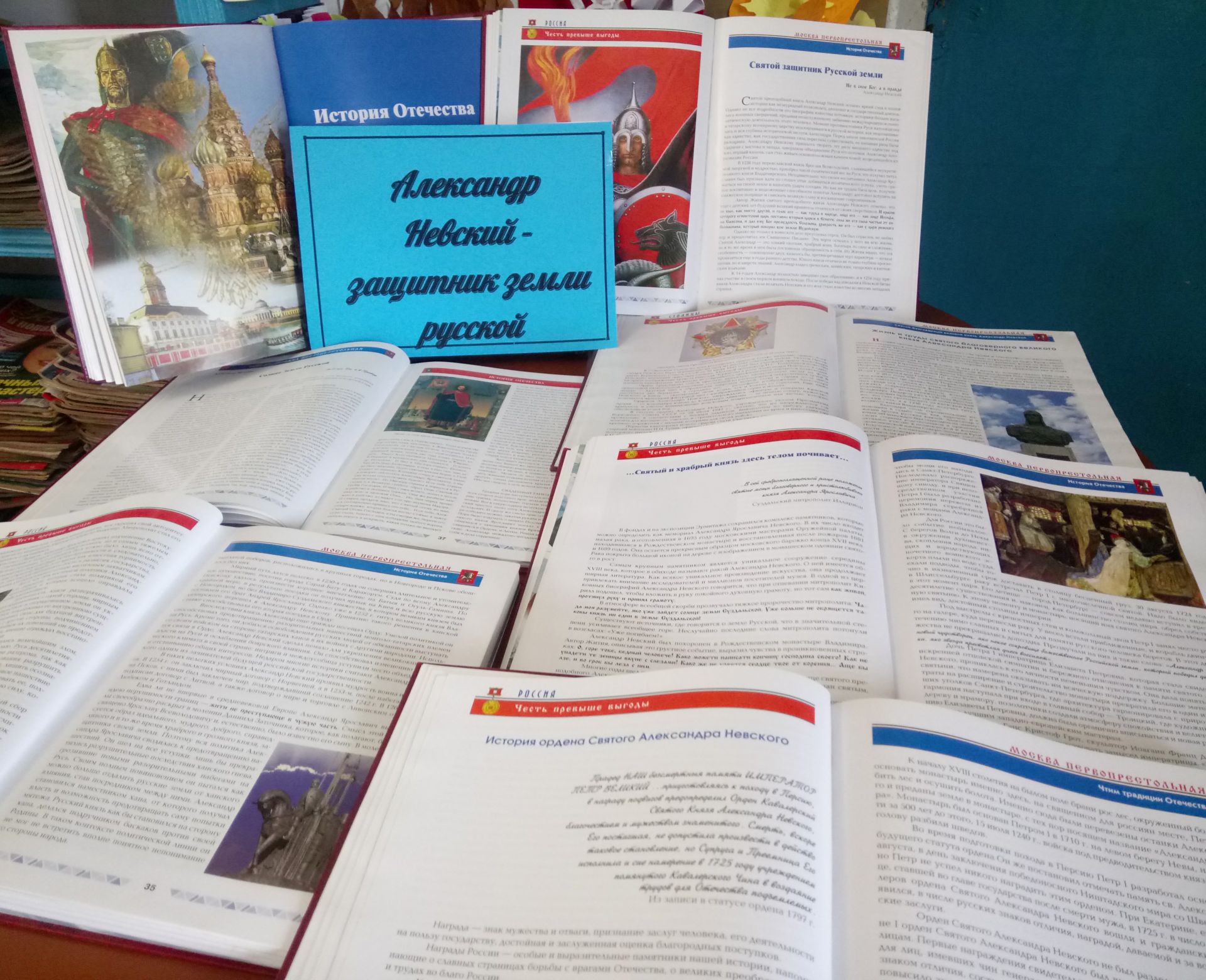 На протяжении семи веков русские люди помнят чтут подвиги Александра Невского. Его имя не забыто и в наши дни. 12 мая библиотекарь Придорожненской библиотеки Легкошерстова Т.М., подготовила тематическую выставку: «Защитник земли русской» к 800-летию со дня рождения Великого деятеля и полководца А. Невского.