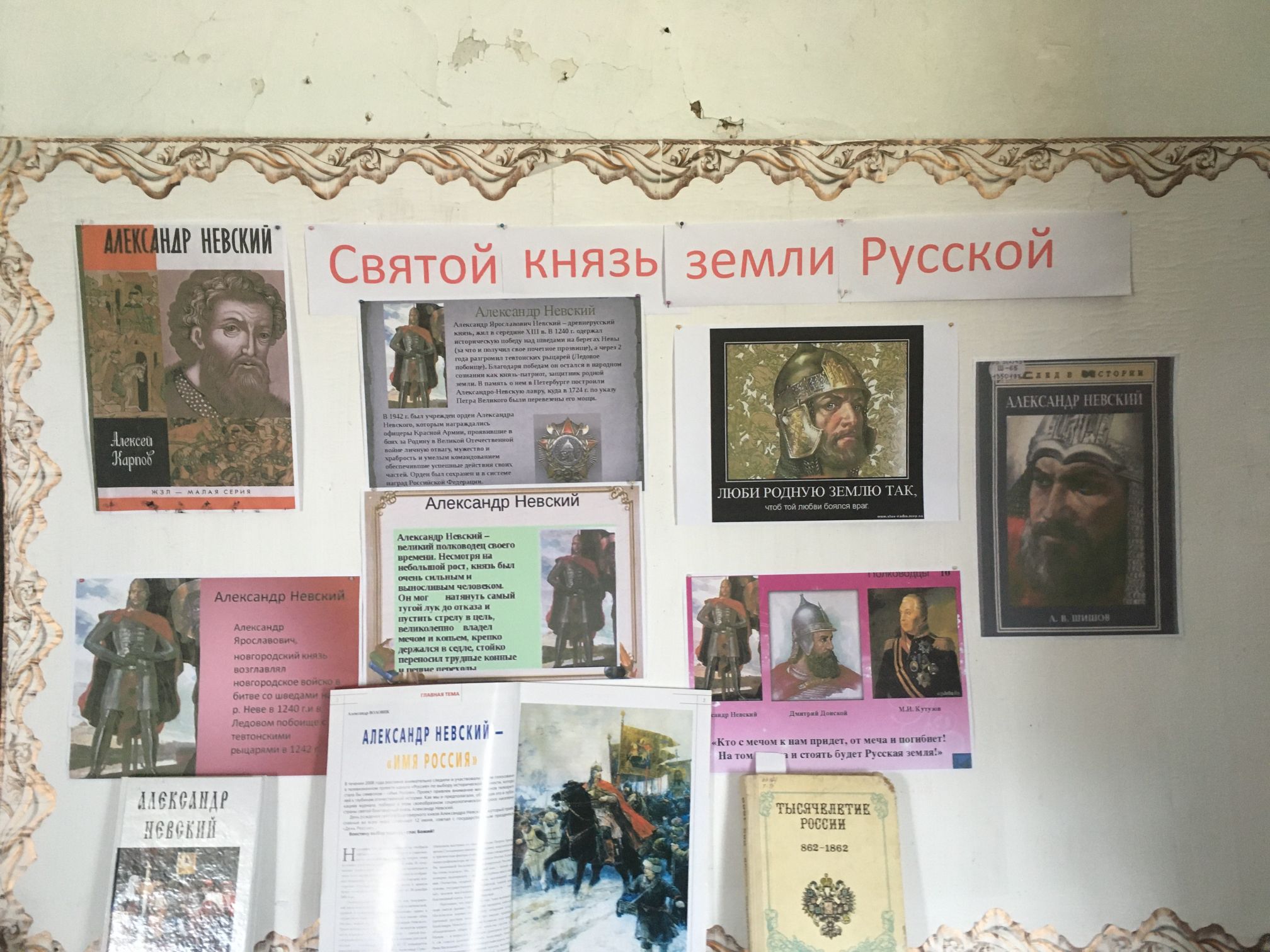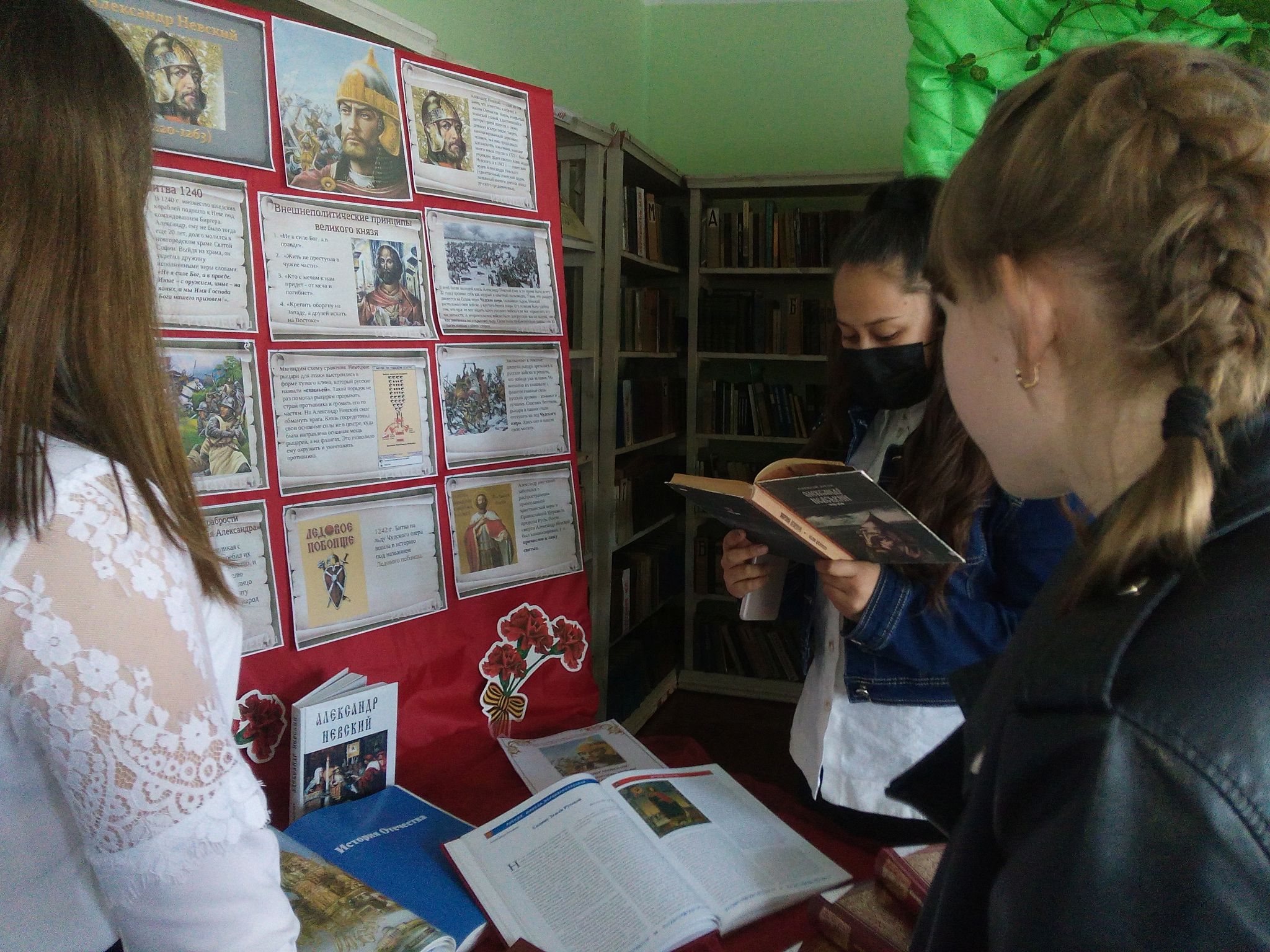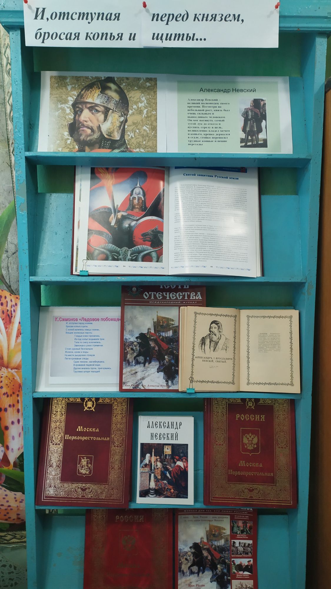К 800-ю со дня рождения князя Александра Невского, в Новосельцевской библиотеке была выставлена тематическая полка «И отступая перед князем, бросая копья и щиты...»