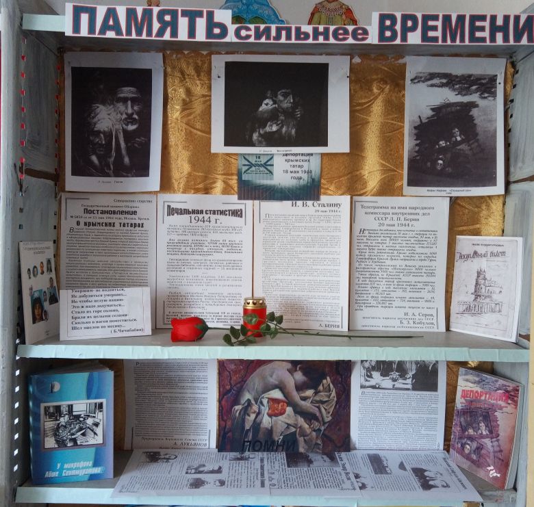 18 мая в Республике Крым отмечается самая печальная и трагическая дата в истории крымских татар – депортация коренного народа полуострова. Народ подвергся насильственному и тотальному выселению со своей Родины. Вернуться на свою землю они смогли лишь спустя полвека. В библиотеке с. Перепелкино оформлена тематическая выставка «Память сильнее времени», посвященные этой скорбной дате.