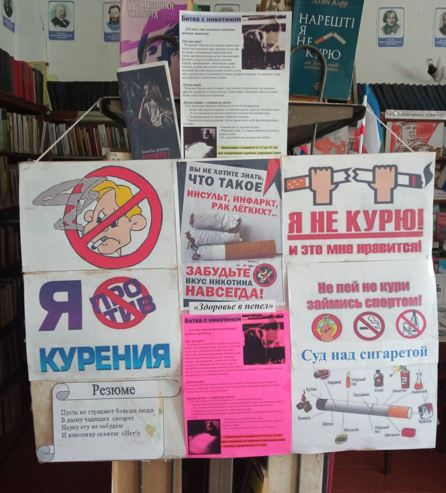 31 мая в Предмостнеской библиотеке к вниманию читателей библиотекарь Чудопалова И. Н. к Всемирному дню без табака подготовила беседу «Здоровье ничто, но всё ничто, если нет здоровья». Всемирный день без табака входит в систему всемирных и международных дней ООН. Библиотекарь Чудопалова рассказала жителям села, что во всем мире 31 мая проводится международная акция по борьбе с курением - Всемирный день без табака, то есть день, свободный от табачного дыма. Он был установлен в 1987 году Всемирной организацие