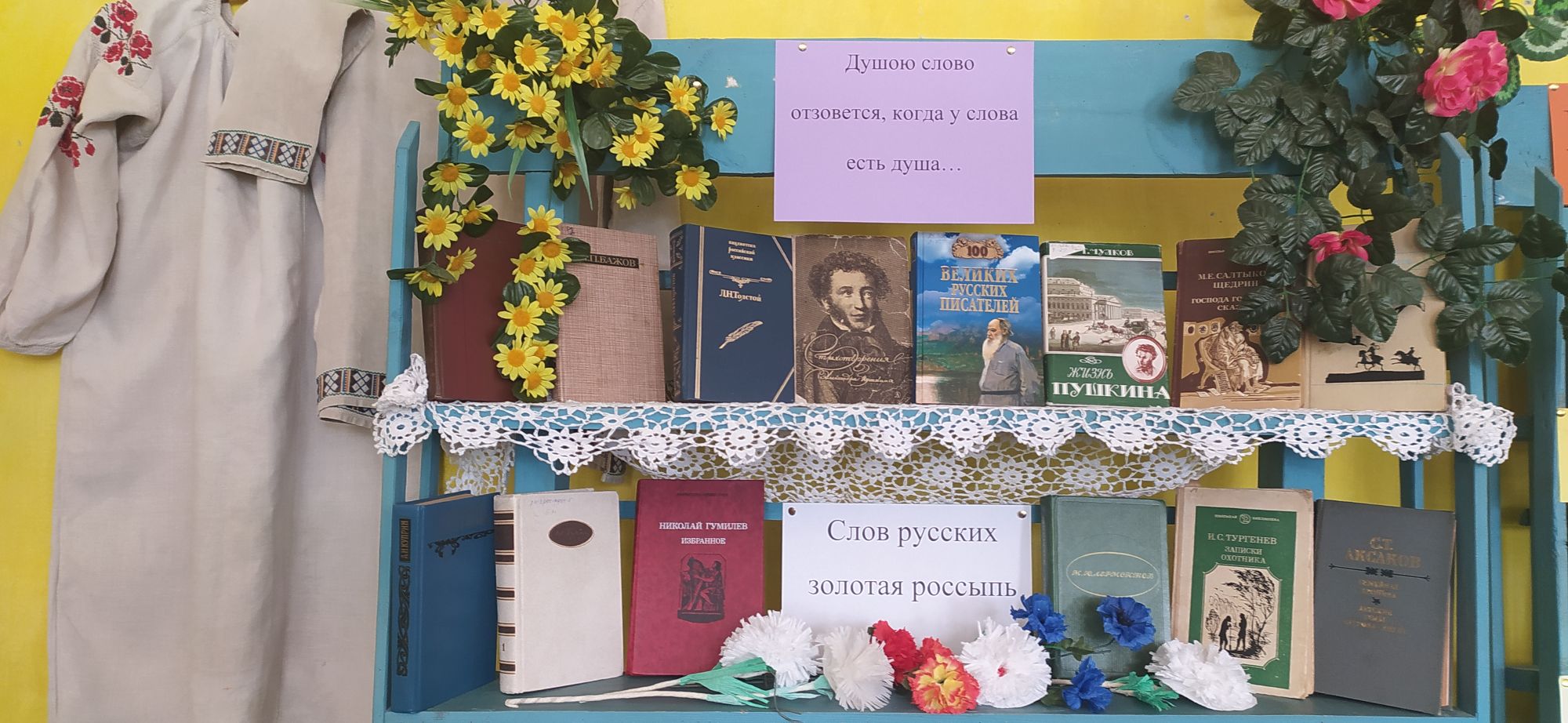 7 июня, в рамках фестиваля " Великое русское слово... " В Новожизненской библиотеке, библиотекарь Исаева Т. В., для массового читателя подготовила тематическую полку- "Душою слово отзовётся, когда у слова есть душа".