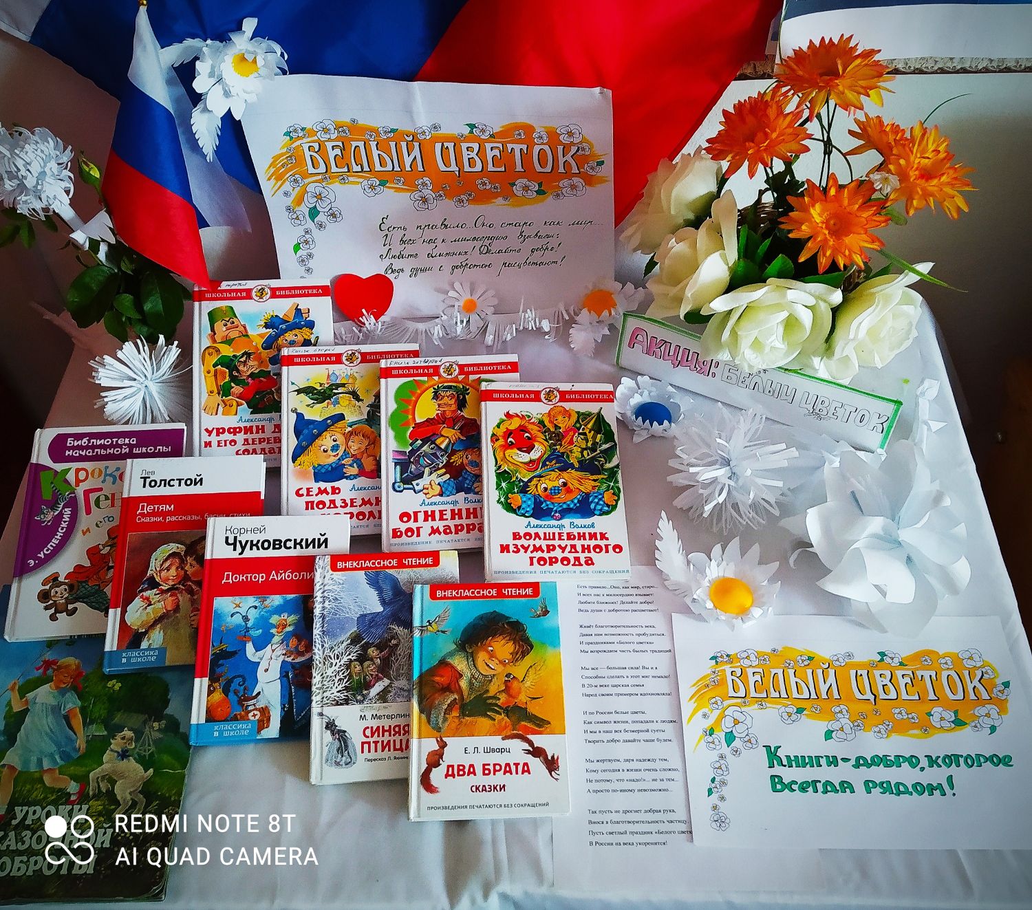 В Медведевской сельской библиотеке в рамках ежегодной акции «Белый цветок» для читателей младшего и среднего школьного возраста была организованна книжная выставка «Книга — это добро, которое всегда рядом!».