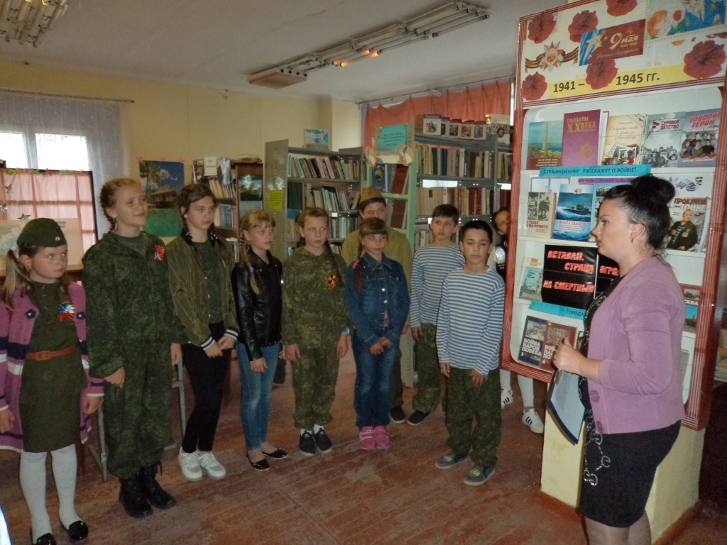 В преддверии празднования 73 годовщины со Дня Победы в Кондратьевской сельской библиотеке прошли громкие чтения «Читаем книги о войне» для учащихся 4 класса Кондратьевской школы. Библиотекарь Назаренко О.Н. рассказала детям о тяжелом и героическом периоде в истории нашей страны, провела обзор литературы с тематической выставки «И память о войне нам книга оставляет». Для чтения и обсуждения были предложены рассказы А.Сидорчука «Десерт из топора», С.Кискина «Оккупация» и «Мстители», стихотворение К.Симонова «Жди меня». С переживаниями и сочувствием были прослушаны эти произведения и все пришли к выводу, что нужно сохранять память о истории нашей страны, передавать ее будущим поколениями и с уверенностью говорить «Я знаю, я помню, я горжусь». На мероприятии присутствовало 19 человек.