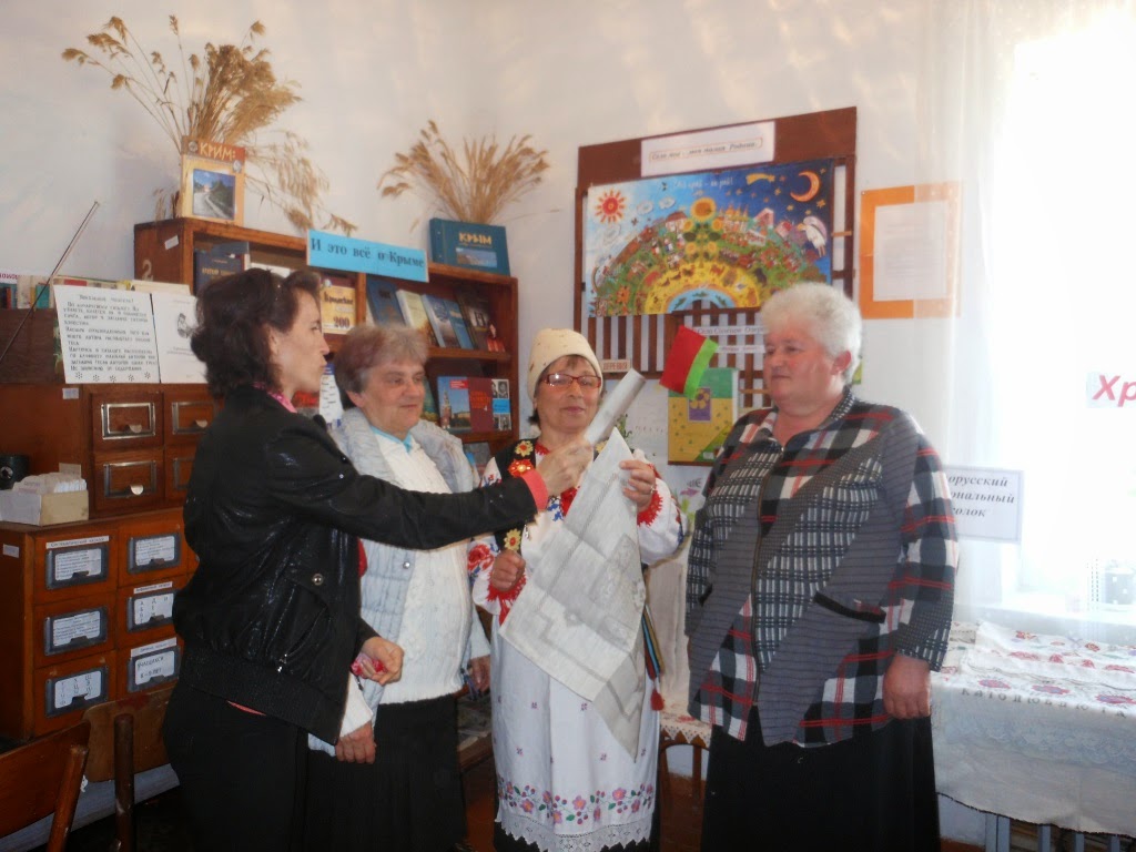 Закончился выездной семинар посещением Солёноозёрной сельской библиотеки. Хлебом солью гостей встречали сельский голова Александр Иванович Бочаров и одетая в яркий национальный белорусский наряд сельский библиотекарь Антонина Павловна Подлегаева. Присутствующие совершили увлекательный экскурс по этнографической выставке-экспозиции белорусского народного творчества «Хранить память своей Родины», на которой были представлены книги, предметы домашнего обихода и утвари, домотканые вышитые рушники, наволочки, накидки на подушки, скатерти, национальные блюда. Не остались в долгу и коллеги-гости, своим творческим выступлением они представили обычаи русских, украинцев, крымских татар и калмыков. Прекрасным завершением рабочей программы семинара стало исполнение песен на русском, белорусском, украинском и крымскотатарском языках. Особенно всех поразила песня на крымскотатарском языке в исполнении Варвары Городней и Фатиме Алиевой. «Крым – многонациональный полуостров. Здесь рядом живут русские, татары, украинцы, греки, караимы, армяне и представители многих других национальностей и народностей, не исключение и коллектив библиотекарей Джанкойского района. Мы разные по национальности, но единые по умыслу, - отметила ведущий методист Лора Романюк.- И в нашем многонациональной республике нам интересна каждая национальность и народность».