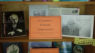 21 мая отмечается 100 лет со дня рождения крупнейшего учёного, физика-теоретика, академика АН СССР, одного из создателей водородной бомбы, политического деятеля А.Д.Сахарова. В рамках Года науки и технологий библиотекарь Ближнегородской библиотеки Макарова Елена Владимировна оформила тематическую полку «Гуманист. Учёный. Гражданин». На выставке представлена литература о жизни и деятельности Андрея Дмитриевича Сахарова. В книге «Александр Дмитриевич Сахаров: фрагменты биографии» собраны фотографии и документы из личных архивов родных и близких учёного, отрывки из статей и писем, его автобиографии, воспоминания людей, близко знавших Александра Дмитриевича. Также на выставке представлены материалы из «Большой советской энциклопедии» и интернет-ресурса. | |
