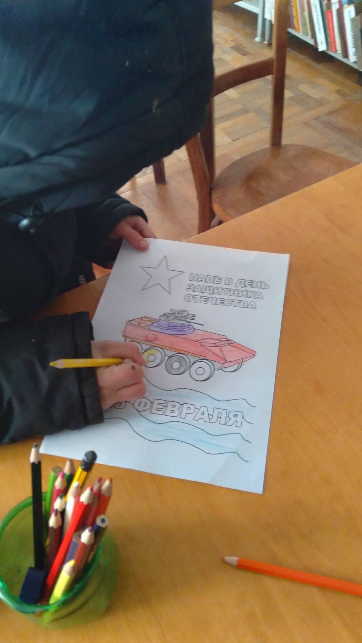 Ежегодно 23 февраля мы чествуем защитников Родины, людей, готовых в любой момент отстоять её рубежи. Это праздник настоящих мужчин - смелых, отважных, ловких и надежных, а также праздник мальчиков, которые вырастут и станут защитниками Отечества. Юные читатели Чайкинской библиотеки приняли участие в конкурсе рисунков «Я честью этой дорожу» в преддверии Дня защитника Отечества, а также узнали подробности об истории праздника. | |