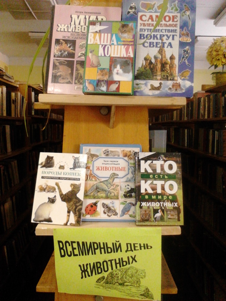 К этой дате библиотекарь юношеского абонемента Джанкойской районной библиотеки З.Абибуллаева провела час интересного сообщения «Эти забавные животные» для учащихся старших классов. Ребята ознакомились с литературой, которая была представлена на книжной выставке, посвящённой Всемирному дню животных. Этот день призван объединять усилия людей в сохранении животного мира нашей планеты и в защите прав домашних животных.