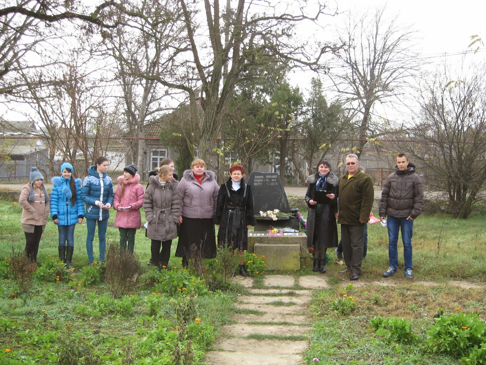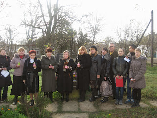 20 ноября 2013г. работники Джанкойской центральной районной библиотеки Л. Данильченко, С. Сапранькова и Л. Богданова совместно с Изумрудненской сельской библиотекой (Р. О. Слепченко) у памятника жертвам Голодомора на территории Изумрудненского сельского совета провели час памяти «Зажги свечу памяти», в связи с 80-летием Голодомора и Репрессий в Украине (1932-1933гг.). Историком – краеведом В. Турчиным были озвучены и представлены конкретные исторические свидетельства и фотодокументы, свидетельствующие о том тяжелом периоде истории украинского народа. Об истории открытия памятника жертвам голодомора на территории села Изумрудного рассказала голова сельского совета Н. Яковец. Библиотекари районной библиотеки и учащиеся Изумрудненской общеобразовательной школы читали стихи, посвященные этому печальному периоду истории Украины. На мероприятии присутствовали жители села и коллектив Изумрудненского сельского совета. Завершилось мероприятие минутой молчания, возложением цветов и зажжённых свечей к памятнику. | |