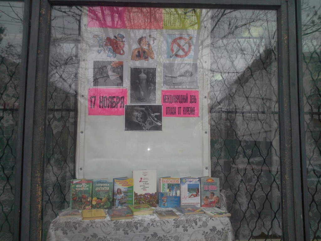 В рамках дня борьбы с курением библиотекарь З. Абибулаева для учащихся профессионального техникума провела час разговора «Не отнимай у себя завтра», она рассказала о негативных свойствах сигарет и табачного дыма, как они пагубно влияют на организм самого курильщика и его родственников, обо всех плюсах жизни людей без курения, и что бросить никогда не поздно сделать.