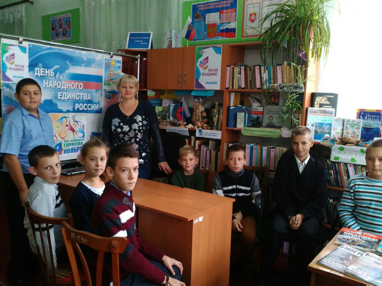 Ко Дню народного единства, с целью формирования правильного отношения молодежи к своей стране, к культурному прошлому России, знанию государственной символике в Победненской сельской библиотеке был поведен цикл мероприятий. Для младших школьников был подготовлен исторический час «Сыны Отечества, освободившие Россию». Для юношества в библиотеке прошло мероприятие под названием «Живи и славься, Русь святая!» на котором ребята говорили не только о событиях четырехсотлетней давности, а и о столетнем юбилее Октябрьской революции. Ведь это хороший повод рассказать подрастающему поколению о том, что это событие стало переломным для всего мира, что это героические страницы борьбы нашего народа за свободу и становление Российского государства. Более подробно о событиях 1917 года участники мероприятия могут узнать с помощью книжной выставки «1917- код революция».