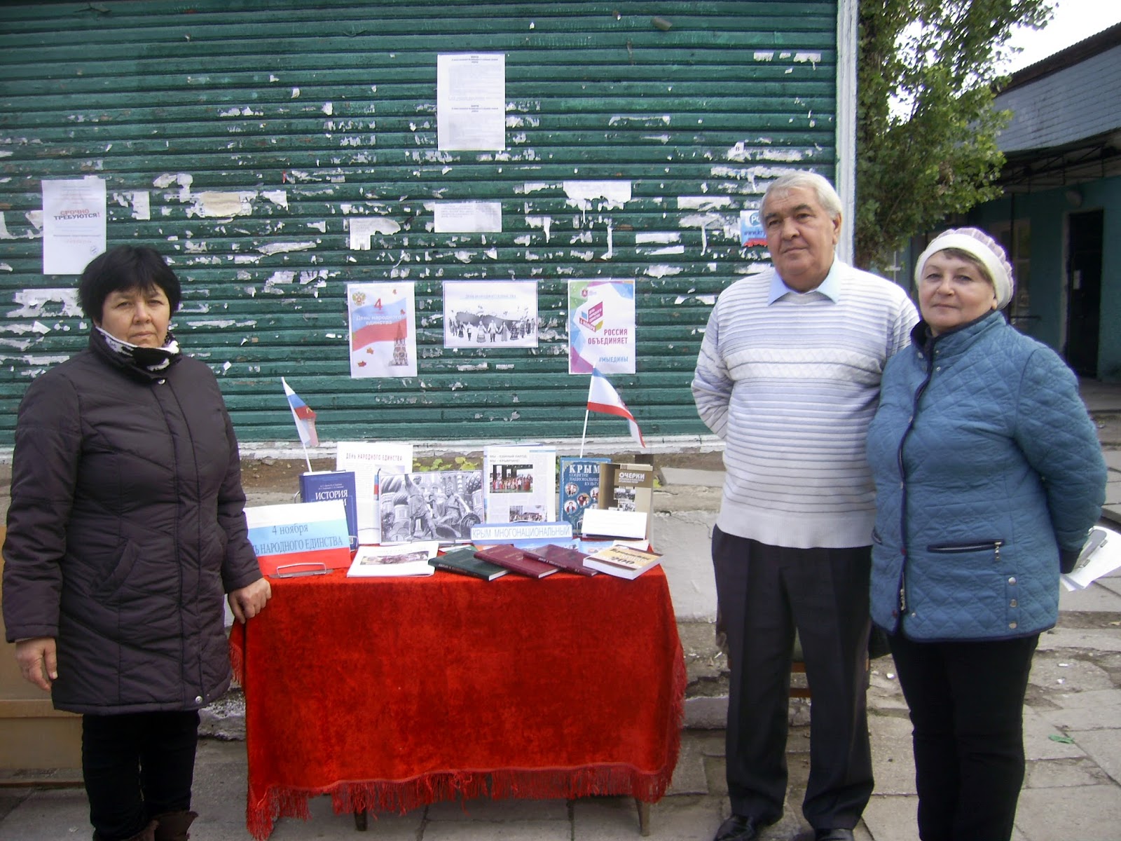 4 ноября ко Дню народного единства Азовская поселковая библиотека презентовала книжную выставку «Россия, родина, единство» на которой была выставлена литература о народностях Крыма и России, об истории России в тяжелые смутные годы, о единстве простого народа и победе ополчения под руководством Минина и Пожарского. Жители поселка проявили большой интерес к предоставленной литературе.