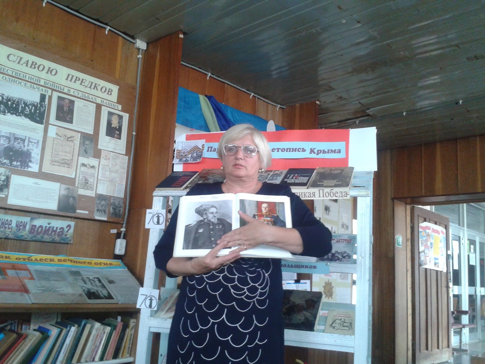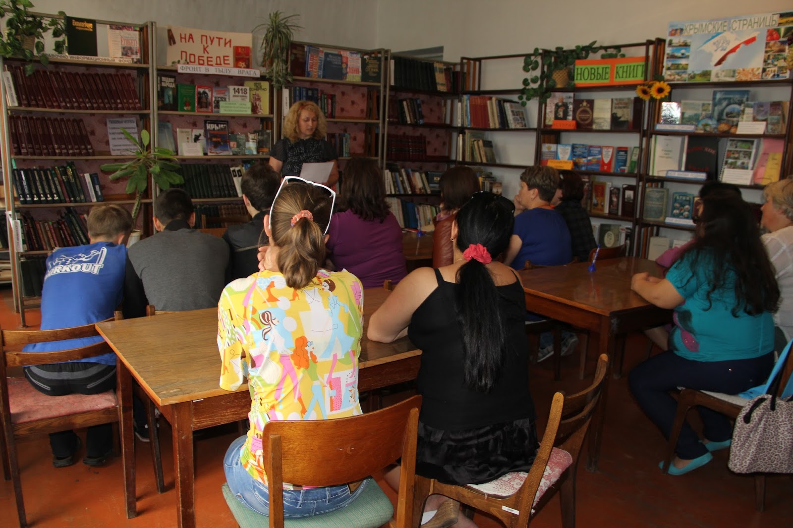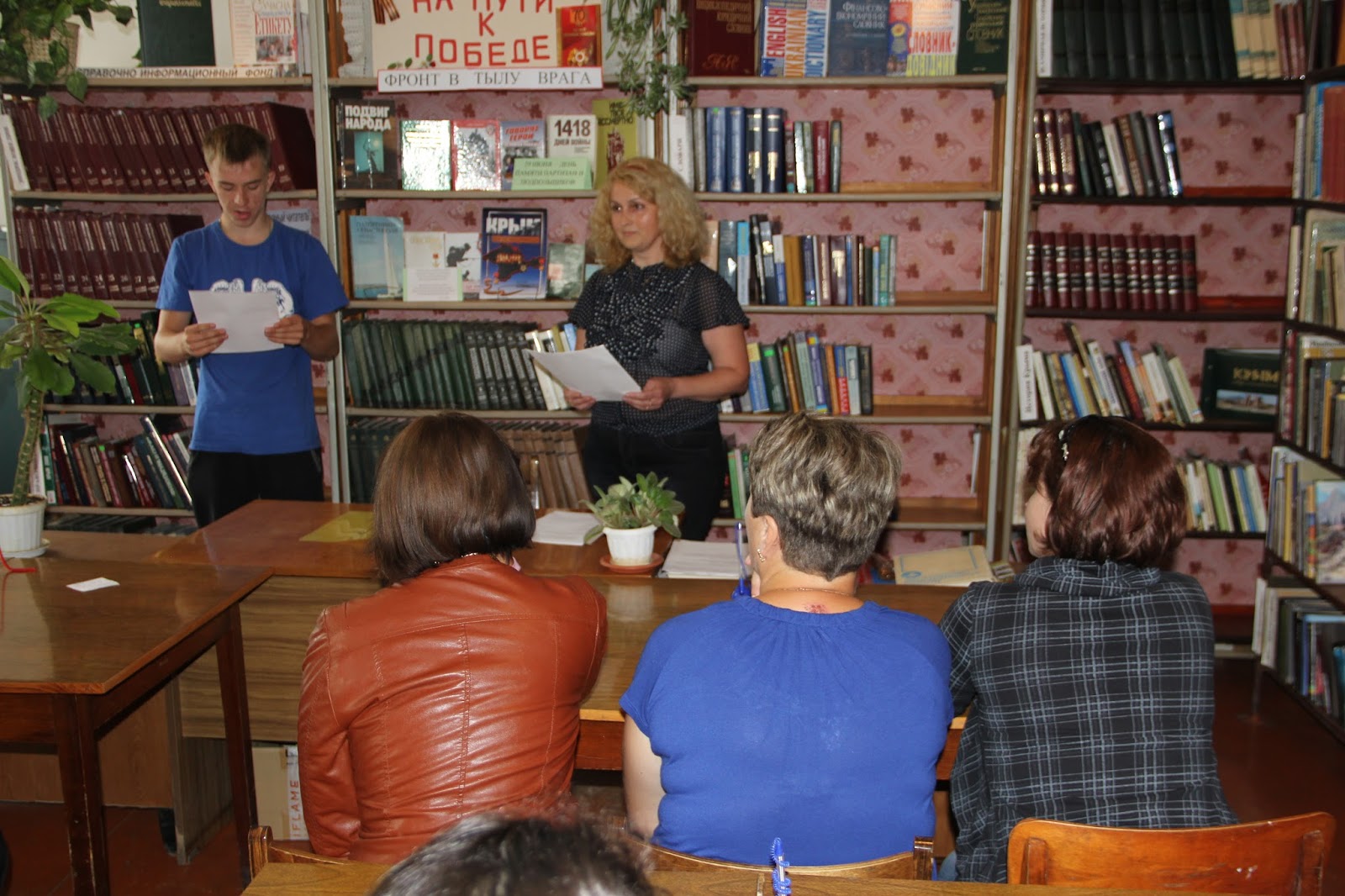 Библиотекарь рассказала о действии крымских партизан во время Великой Отечественной войны. Отдельно была рассказана история об Ичкино-Калайском партизанском отряде, который был сформирован из жителей поселка Азовское. Присутствующие были приглашены на торжества, посвященные закладке первого камня будущего памятника воинам-партизанам Ичкино – Калайского отряда, который состоится 1.07.2015 года.