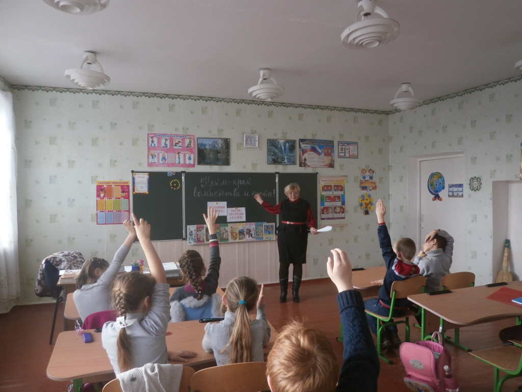 Ко Дню Республики Крым 20 января в Азовской поселковой библиотеке для учащихся младших классов общеобразовательной школы прошел урок краеведения «Эти горы, эти степи - это Родина моя».