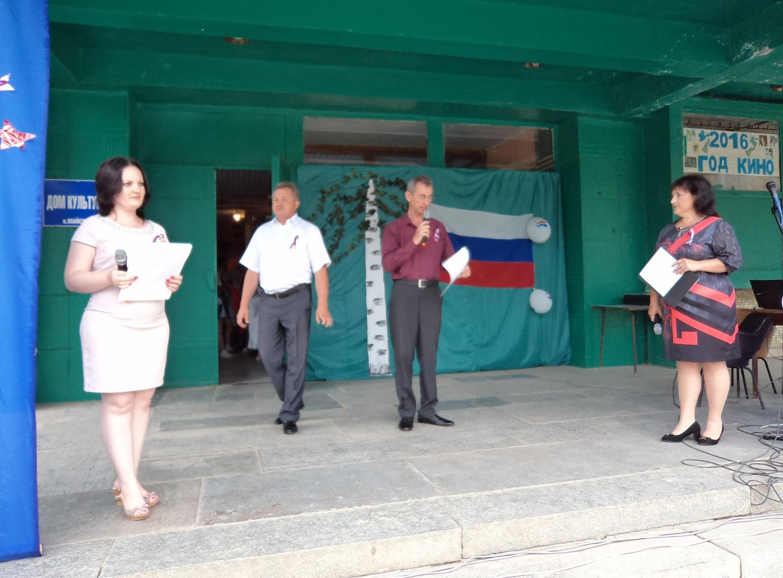 Майская библиотека совместно с Домом культуры провели патриотический вечер "Вместе мы большая сила, вместе мы страна Россия!", посвященный празднованию Дня России. Ведущие мероприятия (библиотекарь Миколайчук Ю.Н. и художественный руководитель Сак Т.В.) рассказали гостям об истории праздника, о государственных символах и традициях России, а также поздравили всех присутствующих с этим государственным праздником. В ходе мероприятия звучали самые теплые и искренние слова о нашей Родине, о народе, который любит и гордится своей страной. Для гостей также звучали патриотические стихи и песни о России в исполнении вокального кружка "Микст". Порадовали всех своими номерами цирковой коллектив "Радуга" и танцевальный коллектив "Непоседы".