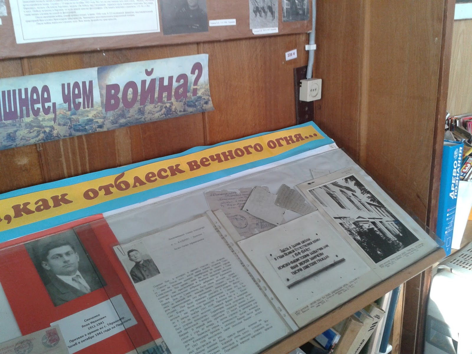 В Победненской библиотеке для читателей оформлено несколько фото-стендов: «Село мое - судьба моя» - о людях, чья судьба неразрывно была связана с историей села, «Люби и знай, село родное» - об истории села и конечно, стенд, рассказывающий о подвигах односельчан в годы Великой отечественной войны «Гордимся славою предков».