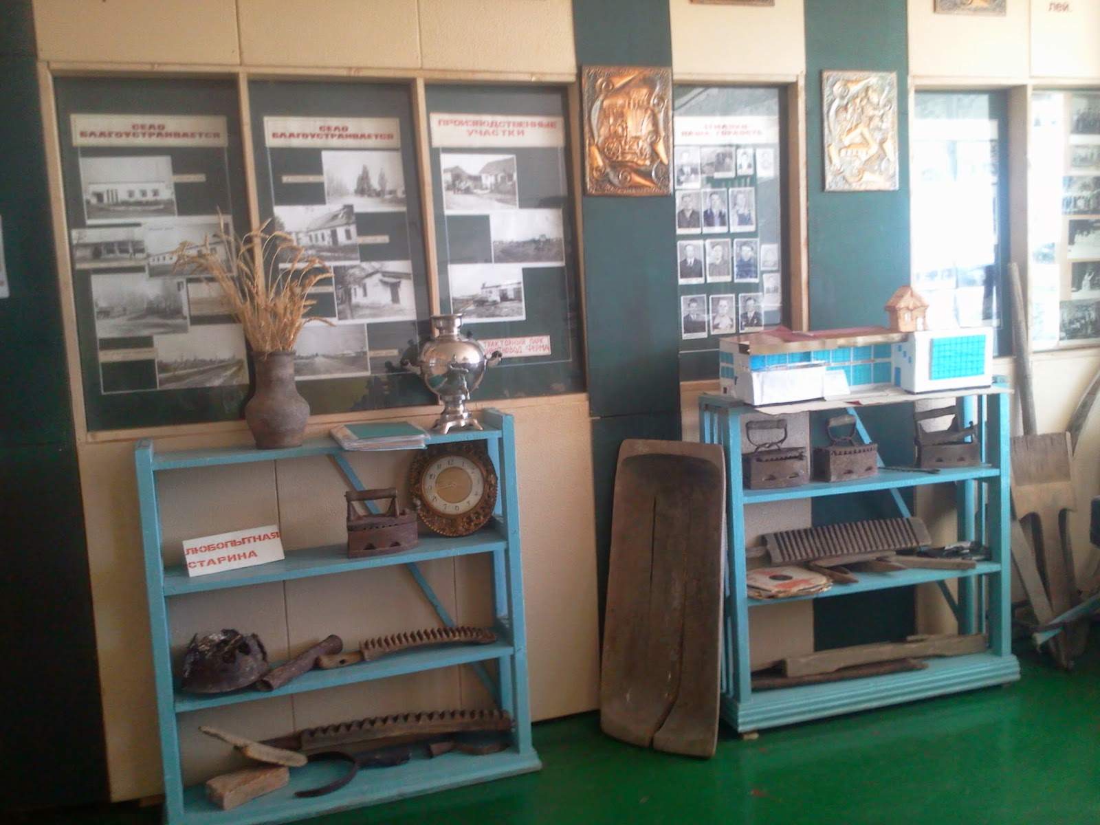 Хозяйка музея, заведующая библиотекой Шевцова Татьяна Николаевна, рассказала о работе музея за прошедшие 25 лет и провела экскурсию по экспозициям музея. Татьяна Николаевна обратила внимание гостей на обновленные экспозиции: «Золотые руки наших односельчан» и «История и быт крымскотатарского народа». Среди экспонатов музея – фотографии основателей села, переселенцев из Смоленской области, председателей некогда процветающего хозяйства, безмолвные свидетели ушедших лет; домотканая рубашка, скатерть, табак , которому полвека, патефон и другая утварь. Особый интерес у гостей праздника вызвала экспозиция, посвященная Великой Отечественной войне, где помещены фронтовые письма, похоронные извещения, военные билеты, списки и фото погибших односельчан, военная атрибутика.
