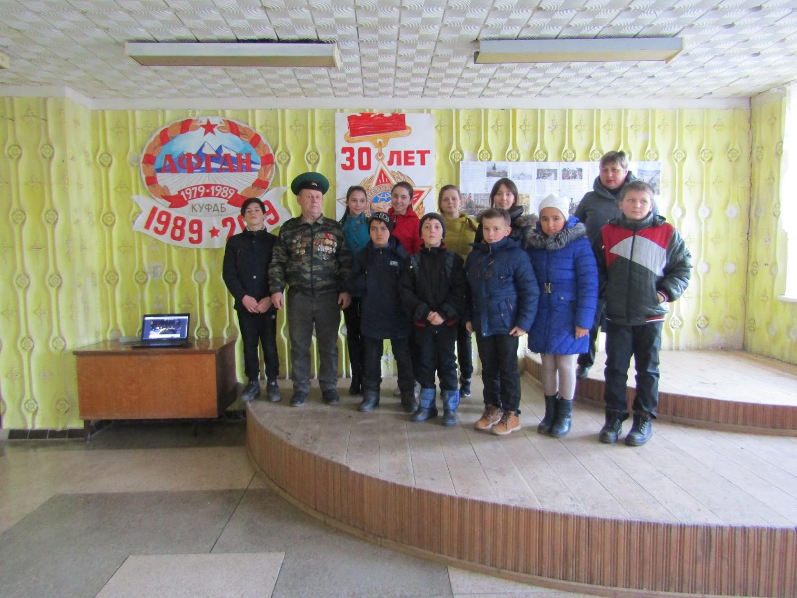 15 февраля, в 15 час, Днепровский клуб совместно с библиотекой провели литературно-музыкальный вечер "Души, опаленные Афганом". На вечер были приглашены 5 воинов-интернационалистов. Присутствовал один- Денисов Андрей . Его торжественно поздравили и вручили гвоздики. На протяжении всего концерта звучали стихи и песни, посвященные участникам боевых действий. Память погибших почтили минутой молчания. Мы всегда должны помнить тех солдат и офицеров, которые , не жалея своих жизней, выполнили свой воинский долг. Вечер прошел волнительно, со слезами на глазах. Присутствовали- 36 человек.