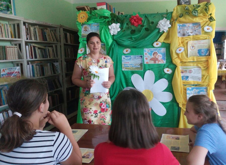 8 июля в России отмечается ни на что не похожий, но очень душевный и глубокий по замыслу праздник – День семьи, любви и верности. День семьи отмечается в России сравнительно недавно - с 2008 года. У нового семейного праздника уже есть девиз: «любить и беречь». 8 июля в Яркополенской библиотеке прошла тематическая беседа "Любви счастливое дыханье". Библиотекарь рассказала присутствующим историю происхождения праздника, о Муромских чудотворцах Петре и Февронии, о символе этого дня - ромашке и о том, что семья - самое главное в жизни каждого из нас. Затем ребята все дружно отвечали на вопросы викторины, вспоминали пословицы и поговорки о семье, отгадывали загадки. В конце мероприятия присутствующие прослушали притчу «Что важнее?», которая помогла найти ответ на вопрос, а что же главное в жизни: счастье, здоровье или любовь?