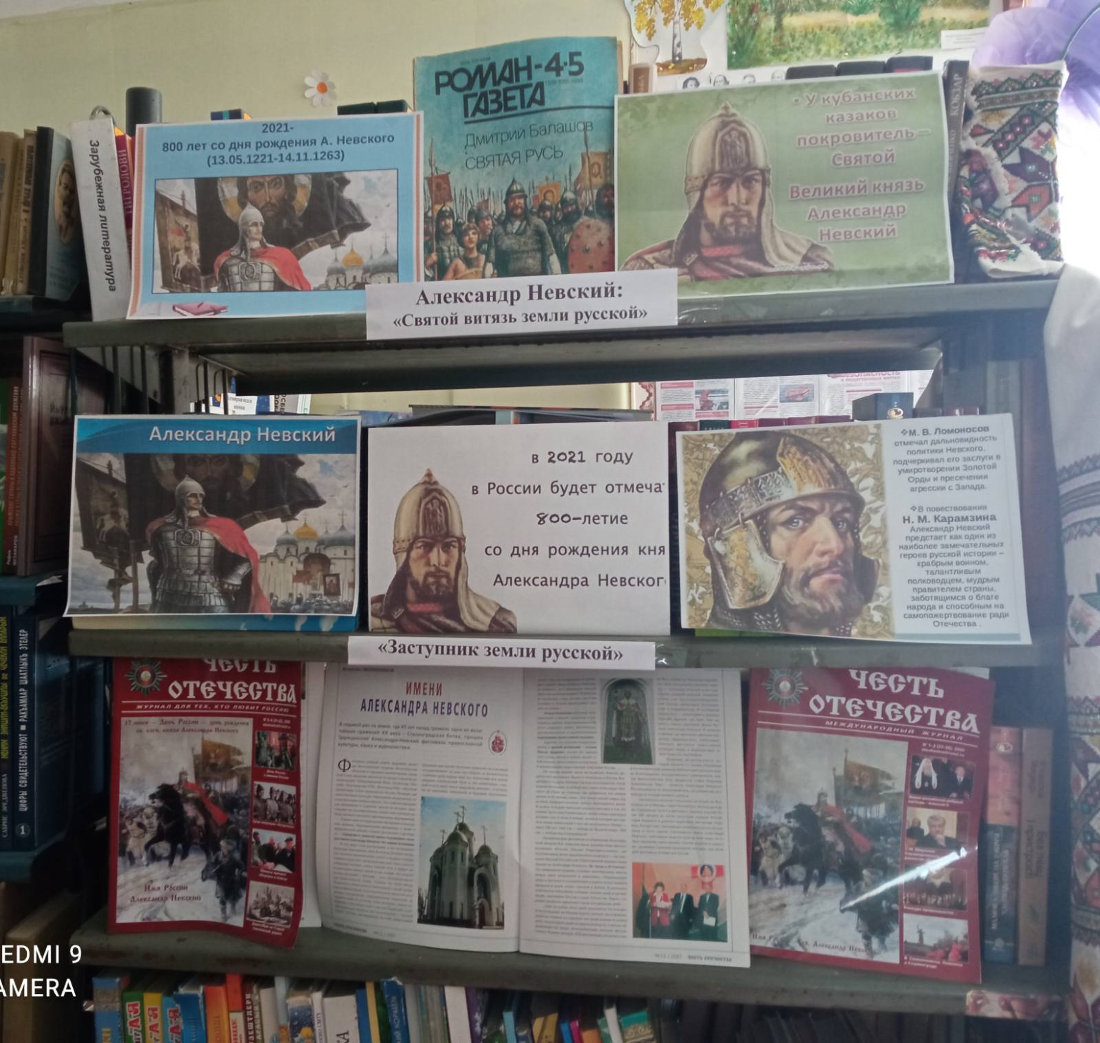 В рамках Месячника оборонно- массовой работы и объявленного в России года 800 - летия Александра Невского, 11 мая в Яснополянской библиотеке проведён патриотический час «Заступник земли Русской». С помощью презентации и видеоматериалов библиотекарь Пуляева Н.Л. познакомила учеников 3-5 классов с удивительной личностью, национальным героем, великим защитником земли нашей русской, великим полководцем, не проигравшим ни одного сражения, святым Александром Невским. Участники мероприятия познакомились с подвигами знаменитого полководца в литературе, живописи, кинематографе. Рассказано о «Повести о житии Александра Невского», как памятнике древнерусской литературы, показаны кадры из художественного фильма «Александр Невский» режиссёра Сергея Эйзенштейна,1938 год. Присутствующие познакомились с тематической полкой Александр Невский: "Святой витязь земли русской». | |