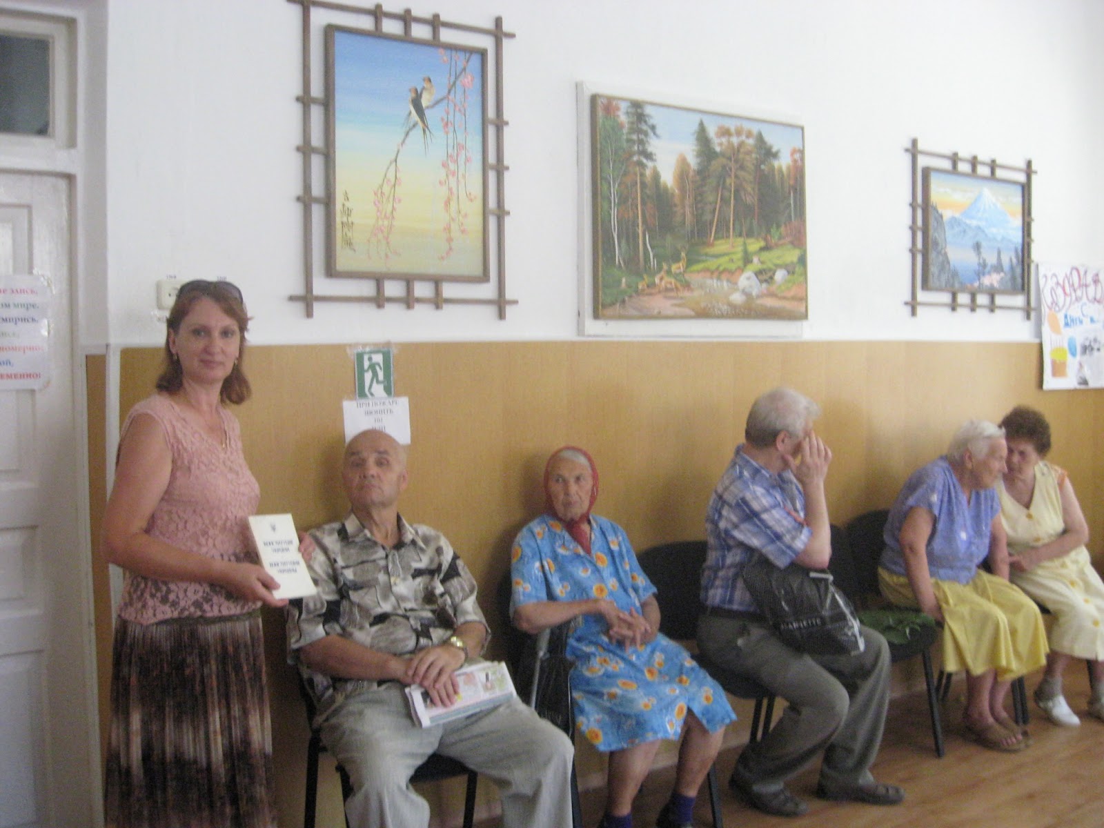 В городском территориальном центре обслуживания пенсионеров (директор Е. Рудницкая) библиотекарь читального зала районной библиотеки А. Кологреева, провела час истории «Конституция Украины – основа демократии». Присутствующие ознакомились с историей принятия Конституции Украины, а библиотекарь отдела обслуживания Л. Данильченко, провела обзор книжной выставки «Державні символи України» на которой представлены книги по истории Украины. | |