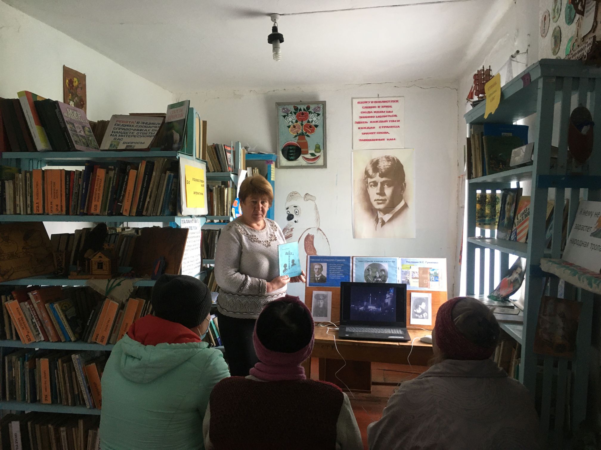 15 апреля библиотекарь Ковыльновской сельской библиотеки Науменко Галина провела литературный час « Мир образов Николая Гумилева», приуроченный 135 — летию со дня рождения поэта для массового читателя. В ходе мероприятия библиотекарь рассказала о судьбе и творчестве Николая Степановича, о его любви к Анне Ахматовой и интересе к Африке. Также просмотрели видео — презентацию «Творчество Николая Гумилева», и отрывок из документального фильма «Гении и злодеи. Николай Гумилев» 2006 г. | |