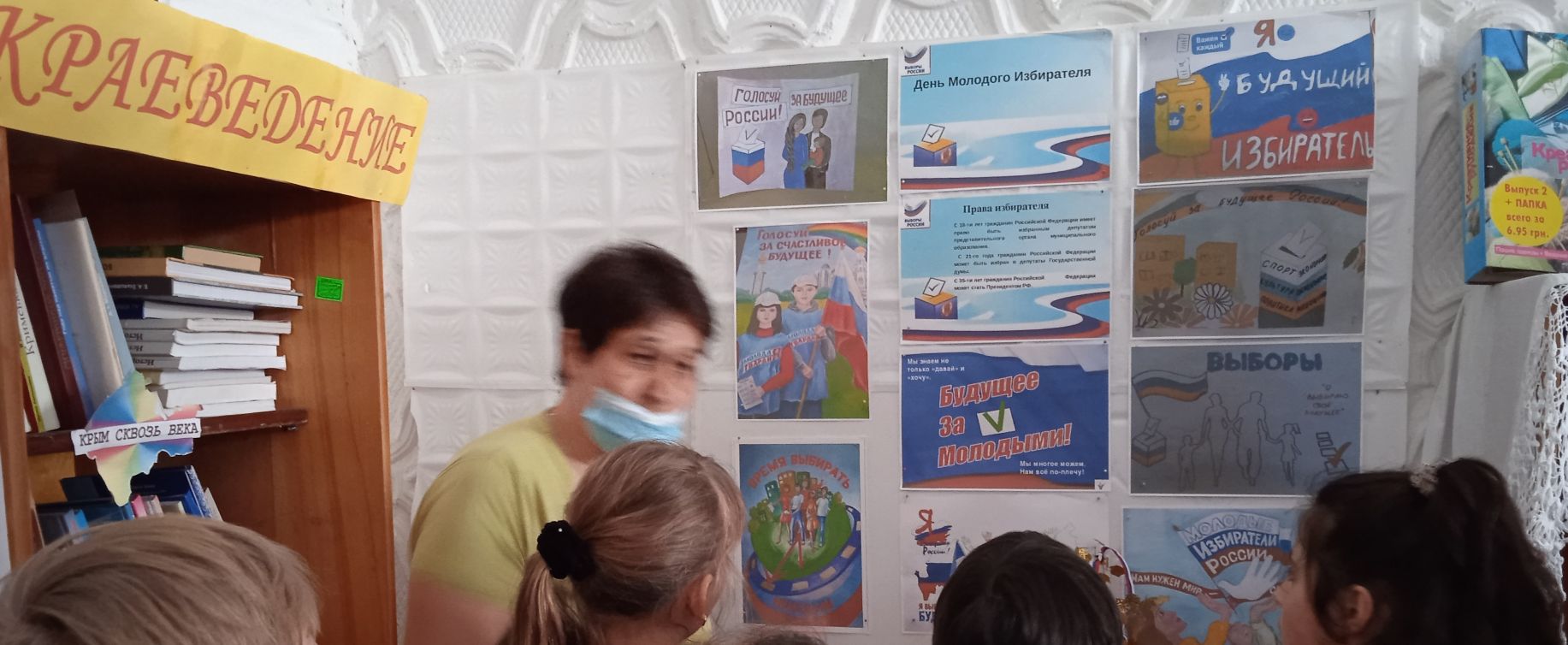 18 мая 2021 года - учащиеся 3-4 классов приняли участие в правовом часе «День молодого избирателя» проведённом в Крымковской библиотеке (библиотекарь Бойчук Лариса Валентиновна). Девизом мероприятия стали слова Н.А. Некрасова «Настоящий гражданин – это Отечества достойный сын». Ребят познакомили с принципами и задачами проведения выборов; с понятиями: «предвыборная программа», «бюллетень», «урна», «кабинка», «кандидат»; с правовыми и конституционными основами РФ. Чтобы было более понятно, что такое выборы и как они проходят, учащимся было предложено прослушать сказку и поучаствовать в деловой игре «Лесные выборы», где они были избирателями. К мероприятию в библиотеке подготовлена выставка –плакат «Молодому избирателю»