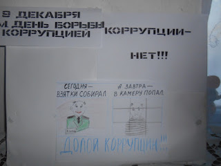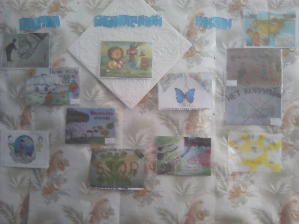 В Майской библиотеке 9 декабря состоялся конкурс рисунков "Страна без коррупции", посвященный дню борьбы с коррупцией. В нем приняли участие детей до 14 лет. Цель мероприятия - углубление теоретического уровня познания детей такого явления, как коррупция, причин возникновения, факторов, способствующих ее развитию. Библиотекарь Миколайчук Ю.Н. рассказала детям о том, что такое коррупция, о ее причинах и последствиях. После этого с детьми был проведен конкурс рисунков на данную тематику. Дети рисовали рисунки с лозунгами "Нет коррупции", "Стоп коррупция" и др., что позволило сделать вывод об усвоении отрицательного отношения детей к данному понятию.