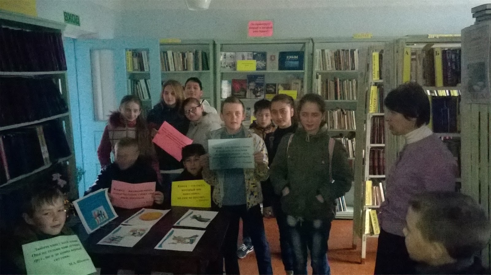 Районная библиотека В Джанкойской районной библиотеки к неделе детской и юношеской книги прошел литературный час «Открываем книгу - открываем мир». На литературном часе библиотекарь отдела обслуживания Власова С.Г. ознакомила юных читателей библиотеки с современными авторами и рассказала, какая литература пользуется спросом, какие книги познавательные и какие современные авторы хорошо и интересно пишут. Основным примера была Дж. Роулинг со своей серией книг о Гарри Потере - на основе этой серии книг были сняты фильмы о мальчике волшебнике. В завершении мероприятия библиотекарь ознакомила гостей с книжной выставкой «Будем с книжкою, дружить», на которой были представлены книги для детей и юношей. Книги разделены по жанрам сказки для детей и фэнтези для юношей. Азовская поселковая библиотека