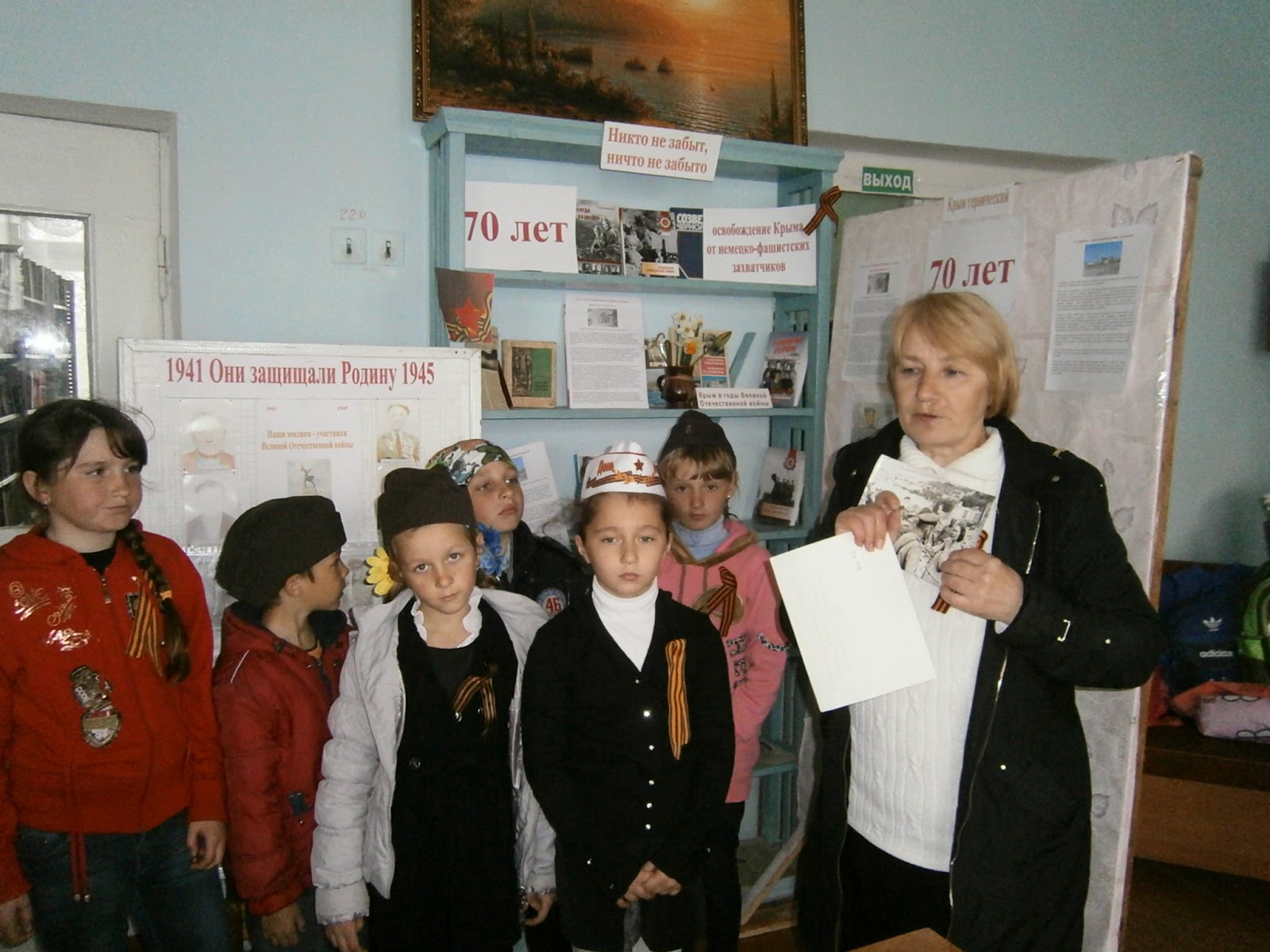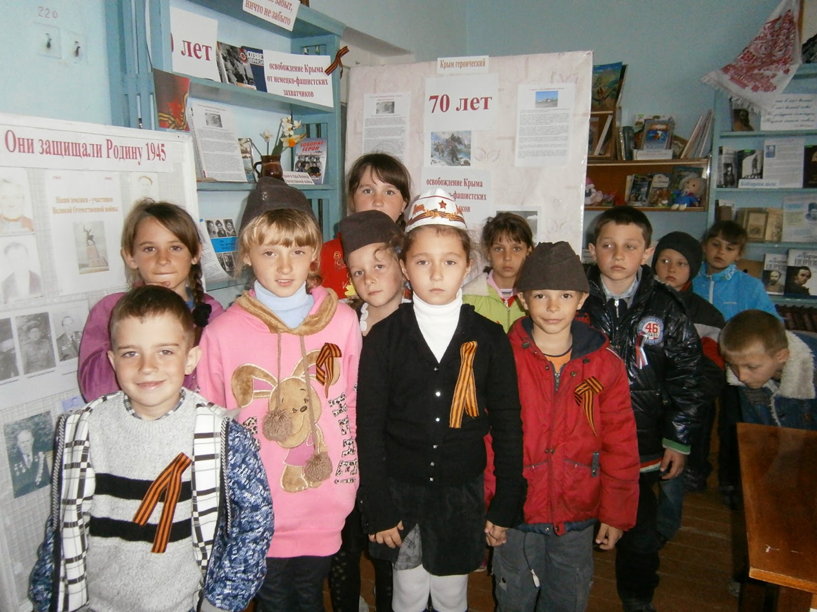 Освобождение Крыма от немецко-фашистских захватчиков было и остается самим дорогим событием для всех крымчан, которые чтят всех тех, кто не продал, не дрогнул, а мужественно освобождал землю крымскую. В Мартыновской библиотеке с 8-го апреля по 12 мая проходит цикл мероприятий посвященных этим памятным событиям. В читальном зале библиотеке оформлена книжная выставка-экспозиция «Никто не забыт, ничто не забыто». На которой предоставлены для читателей документальные материалы, фотографии, книги о боевых действиях на полуострове. Здесь же возле выставки 11 апреля этим событиям был посвящен урок истории «Освобождение Джанкоя: как это было», который подготовила и провела с учащимися Мартыновской ОШ библиотекарь Городняя В.И.. В слайд-беседе «Все помнит родная земля» библиотекарь рассказала ребятам об оккупации Джанкоя и Джанкойского района и о мужестве советских солдат и партизан при освобождении джанкойской земли. Ребята с волнением слушали о тех страшных годах оккупации и о мужестве советских солдат. Тысячи жизней-такова цена освобождения. Так же учитель Мартыновской ОШ Николаенко В.В. 12 апреля провела в библиотеке виртуальный экскурс «Тропами крымских партизан». Затаив дыхание, дети слушали рассказ о мужестве и героизме партизан и подпольщиков Крыма, об их вкладе в освобождении полуострова. И как всегда с наступлением тепла Мартыновская библиотека проводит необычное мероприятие «Библиополяна». «Библиополяна», которая прошла 16 апреля во дворике библиотеки посвящена 70-летию освобождению Крыма. Каждый читатель и просто прохожий мог на свежем воздухе почитать книги на военную тематику, просмотреть папки с фотографиями земляков участников Великой Отечественной войны. В эти дни в библиотеке проходят различные акции, посвященные освобождении земли крымской. 13 апреля прошла акция-благодарность «Письмо герою», на которой дети написали письма-благодарности освободителям Крыма. С 8 апреля по 12 мая в библиотеке проходит поэтический марафон «70 стихов Победе». В марафоне принимают участие читатели и гости библиотеки, которые могут прочитать свое любимое стихотворение о войне. Марафон проходит под девизом «Кто говорит, что войне не страшно, тот ничего не знает о войне…». Так на примере героизма советских воинов и народа в годы Великой Отечественной войны, библиотека старается воспитывать подрастающее поколение в духе благодарности