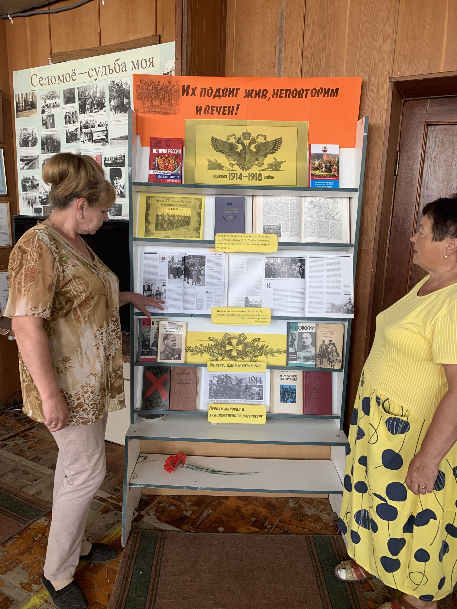 «Их подвиг жив, неповторим и вечен» под таким названием в Победненской библиотеке ко Дню памяти российских воинов, погибших в Первой мировой войне, была проведена беседа у книжной выставки. Первое августа – это еще один повод вспомнить о забытых героях истории, об участниках тех далеких сражений. Знакомя читателей с выставкой, заведующая Победненской библиотеки Кареева Татьяна Борисовна рассказала о причинах и начале Первой мировой войны, коллективном героизме русской армии (оборона крепости Осовец, Брусиловский прорыв), о подвигах отдельных воинов-ото П. Нестерове, В.Чапаева, Г. Жукова. Первая мировая война – страшная трагедия для России. Участие в этом кровопролитии откинуло развитие России на много десятилетий назад. Голод, холод, братоубийство- все это ярко описано в художественных произведениях русских авторов, которые тоже представлены на выставке. | |