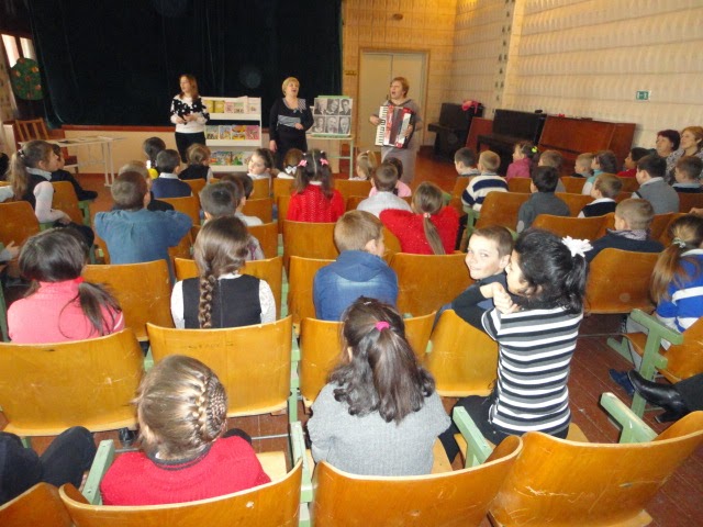 Анна Ярославовна сообщила детям о том, что некоторые стихи композиторы перекладывают на музыку и с помощью учителя музыки Ирины Сергеевны Крупичко, дети исполнили несколько песен на слова Э.Успенского «Голубой вагон» и «Чебурашка», М.Пляцковского «Улыбка» (музыка В.Шаинского).