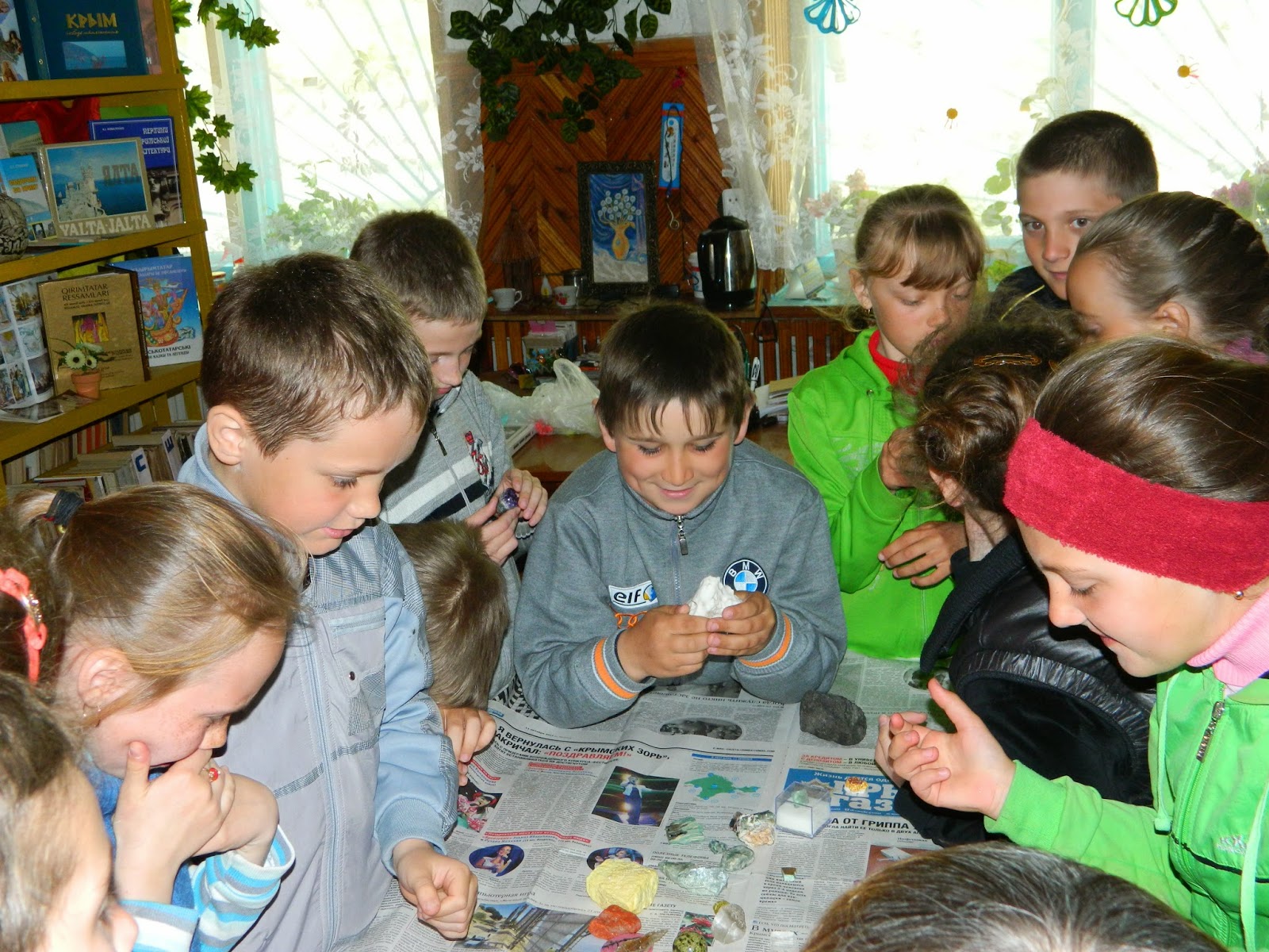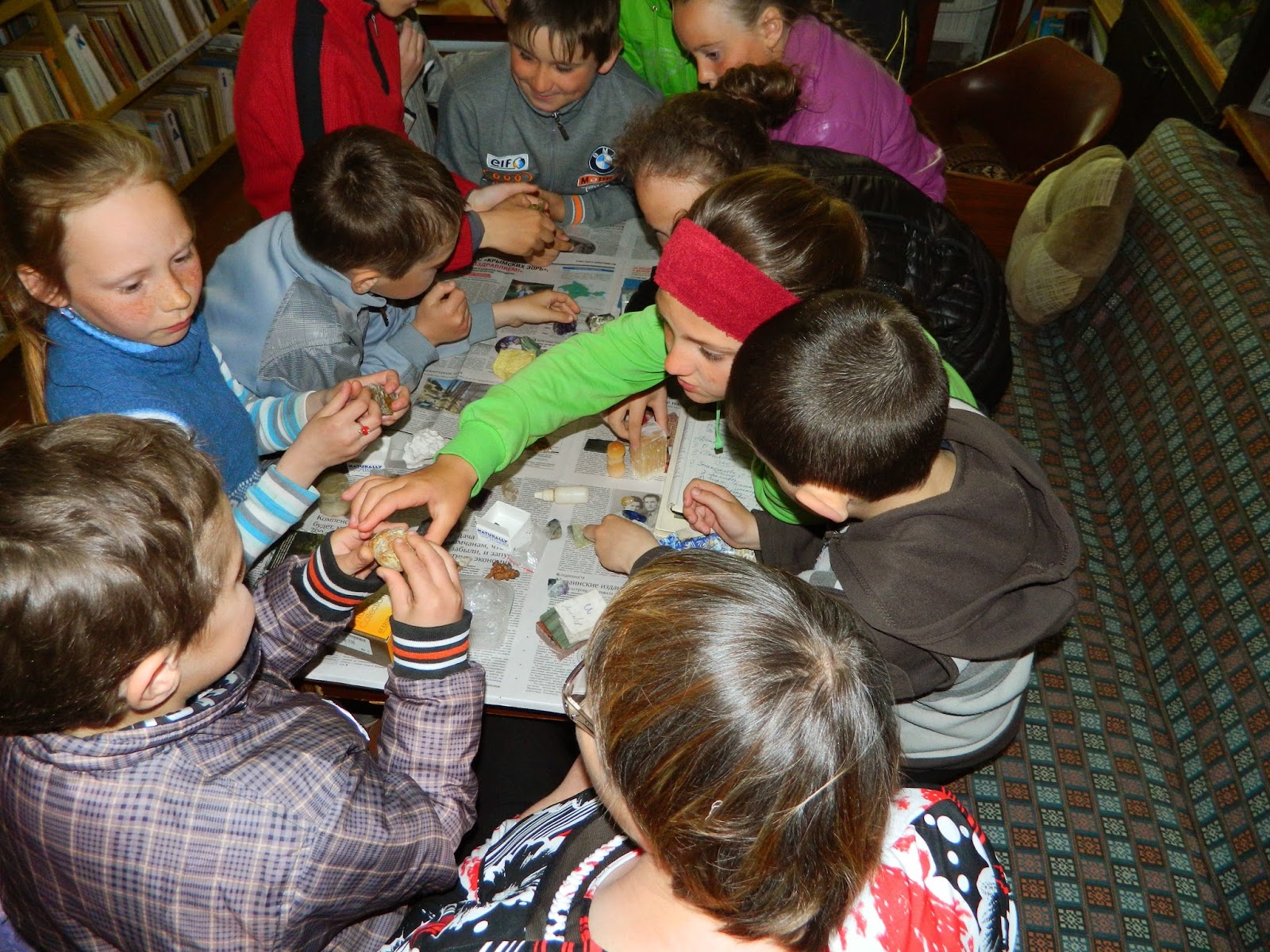 Познавательный час «В гостях у Хозяйки Медной горы» прошел в Светловской сельской библиотеке для учащихся 3-7классов. В роли «Хозяйкой Медной горы» у нас была Работа Людмила Алексеевна – бывший учитель географии нашей школы, а затем руководитель геологического кружка в г. Пермь. Влюбленный в свое дело человек, стремящийся поделиться с детьми своей любовью к камню, минерологи в целом. Дети смогли впервые увидеть, подержать в руках и даже попробовать на вкус камни из «волшебного ящичка». Людмила Алексеевна рассказала о сокровищах своей малахитовой шкатулки, о камнях-самоцветах, о полезных ископаемых.