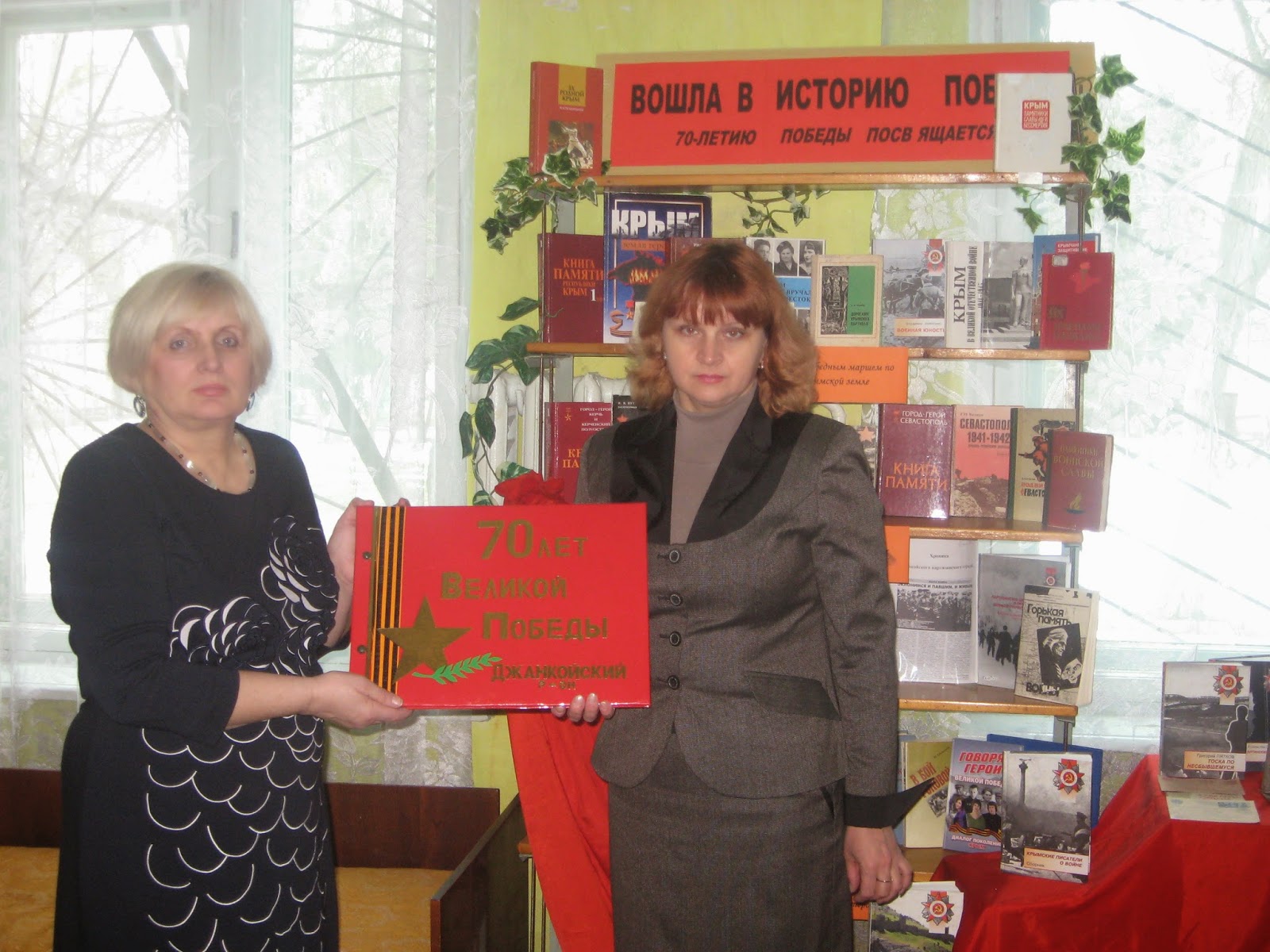 9 мая 2015 года исполняется 70 лет со Дня Победы в Великой Отечественной войне. Этот общенародный праздник – дань уважения к фронтовикам, которые ценою своей жизни защитили страну от фашистского варварства, и героическим труженикам тыла. Их мужество, мудрость и патриотизм являются примером для молодого поколения. 70-летию Победы посвящаются самые разнообразные праздники, акции, встречи, которые являются важным шагом в гражданско-патриотическом воспитании молодежи. Общерайонная эстафета памяти, посвященная 70-летию Победы «Нам деды завещали жить», объединила работу библиотек Джанкойского района в этом направлении. В библиотеках пройдут встречи поколений, уроки мужества, конкурсы, часы памяти, выставки и премьеры книг. По итогам эстафеты будет оформлен альбом эстафеты. 20 февраля в канун Дня защитника Отечества в центральной районной библиотеке состоялось торжественное открытие эстафеты, которая продлится до юбилейного мая. Открыла мероприятие заведующая отделом обслуживания ЦРБ Данильченко Любовь Михайловна и поздравила всех присутствующих с наступающим праздником. Библиотекарь читального зала Кологреева Алла Олеговна рассказала об истории возникновения праздника, а затем передала слово члену союза ветеранов Афганистана Джанкойской горрайонной организации, майору запаса Лекомцеву Сергею Николаевичу. Сергей Николаевич рассказал, как в составе Ограниченного контингента советских войск он оказался на земле Афганистана, Анголы и Конго, вспоминал боевые действия и операции, друзей, погибших и искалеченных на полях этой страшной войны. Он говорил, каким потрясающим испытанием для него стал Афганистан, испытанием чести, мужества и отваги советского воина. Уроки истории не проходят бесследно и молодые люди должны знать историю своей страны, её героические и трагические страницы. Откровения воина-интернационалиста стали настоящим потрясением для молодёжной аудитории, ведь многие из них знали об Афганской войне очень поверхностно. Время не стоит на месте. Все дальше уходят в прошлое события Великой Отечественной войны, но годы не властны над памятью. По-прежнему в сердцах ветеранов, всего послевоенного поколения живет самоотверженная борьба народа за честь, свободу и независимость своего государства. Своими воспоминаниями о тех годах поделился со студентами дорожно-строительного техникума ветеран воинской службы, полковник в отставке Грибенюк Анатолий Николаевич. Учащиеся Победненской общеобразовательной школы под руководством учителя русского языка Мавриной Раисы Николаевны и члены литературного кружка «Серебряное копытце» Победненской сельской библиотеки подготовили подарок для гостей - театрализованное представление отрывка из баллады А.Дударева «Не покидай меня». Финалом мероприятия стала передача директором районной централизованной библиотечной системы Кучерявой Еленой Николаевной альбома «Эстафета памяти» заведующей Победненской сельской библиотеки Кареевой Татьяне Борисовне.