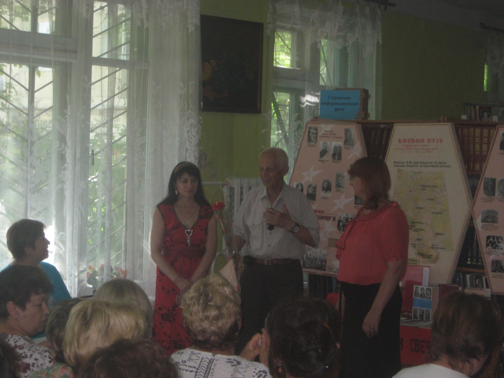 Стихотворение «Так давно отгремела война» прозвучало в исполнении библиотекаря юношеского отдела Зульфие Абибуллаевой. Продолжил встречу Гребенюк А.Н., который содержательно рассказал о первых месяцах войны.