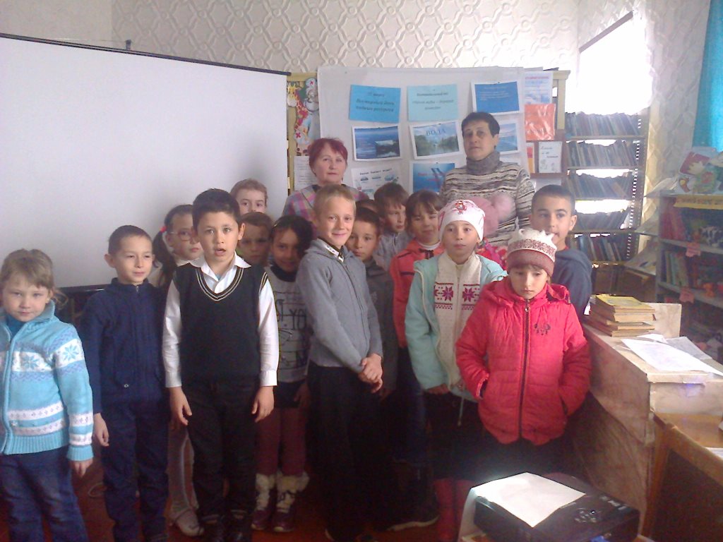 Крымковская сельская библиотека 22 марта 2017 - еще один весенний праздник всемирный день водных ресурсов, который появился в календаре недавно - в 1993 году. Издавна его принято отмечать три дня, приурочивая к нему именины Земли и Воды. К этому дню в Крымковской сельской библиотеке прошел экологический час «Вода – это жизнь», на который пришли ученики 1-2 класса с учителем Шевченко Ниной Дмитриевной. Библиотекарь Бойчук Лариса Валентиновна рассказала ребятам и показала презентацию о водных ресурсах нашего района, о дефиците пресной воды в разных странах, сколько воды на Земле и почему её надо беречь, какие формы может принимать вода, в каких растениях и продуктах питания содержится больше всего воды. Дети отгадывали загадки, и с удовольствием ответили на вопросы викторины «Что растёт в воде» К мероприятию была оформлена книжная выставка «Берегите эти земли, берегите эти воды» и стенд «Вода – чудесный мир природы». В мероприятия библиотекарь ещё раз напомнила ребятам, что вода - это жизнь, это богатство страны, что воду надо беречь. Присутствовало 21 человек.